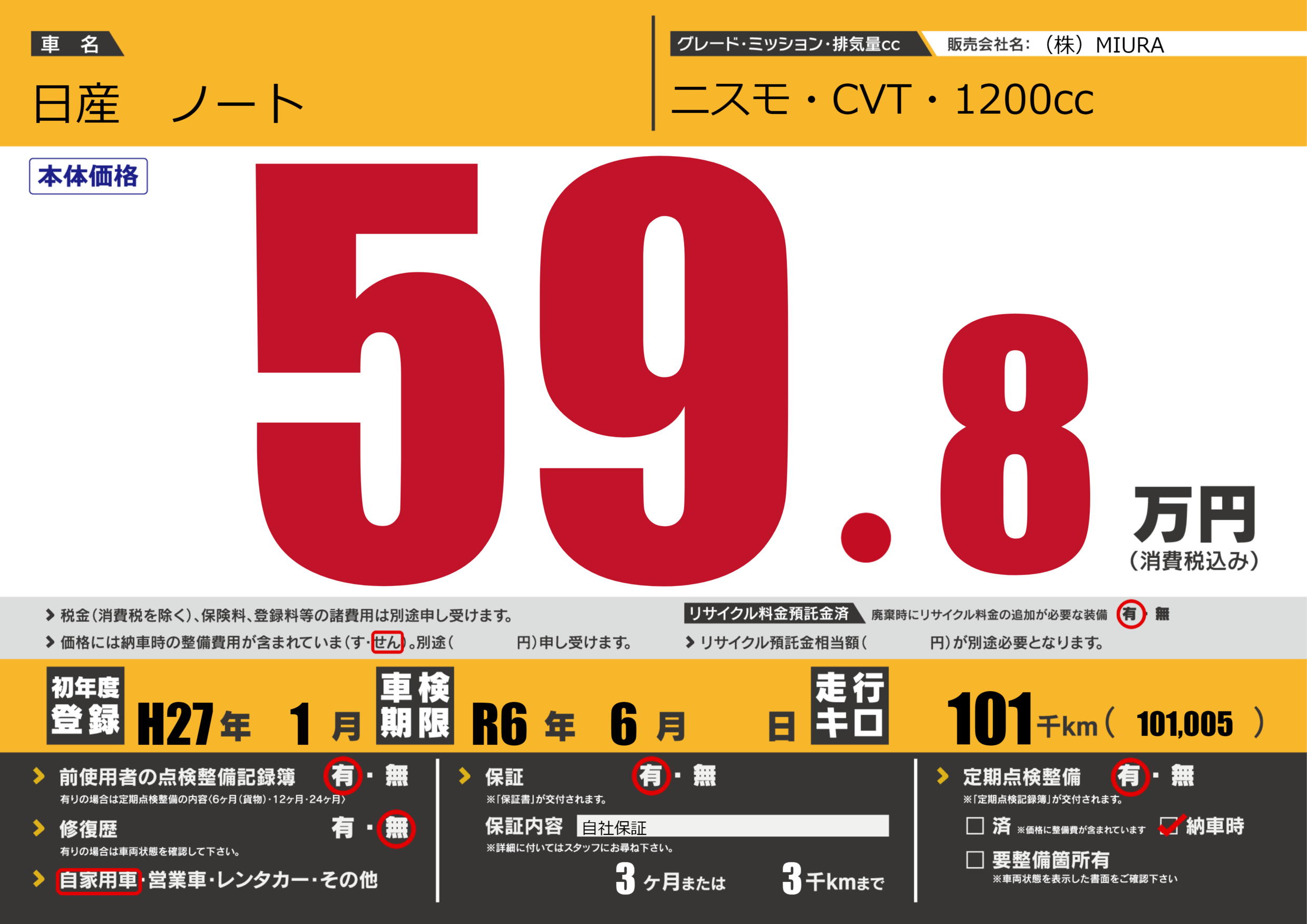 なし | 車検制限 | R6年6月---月 |