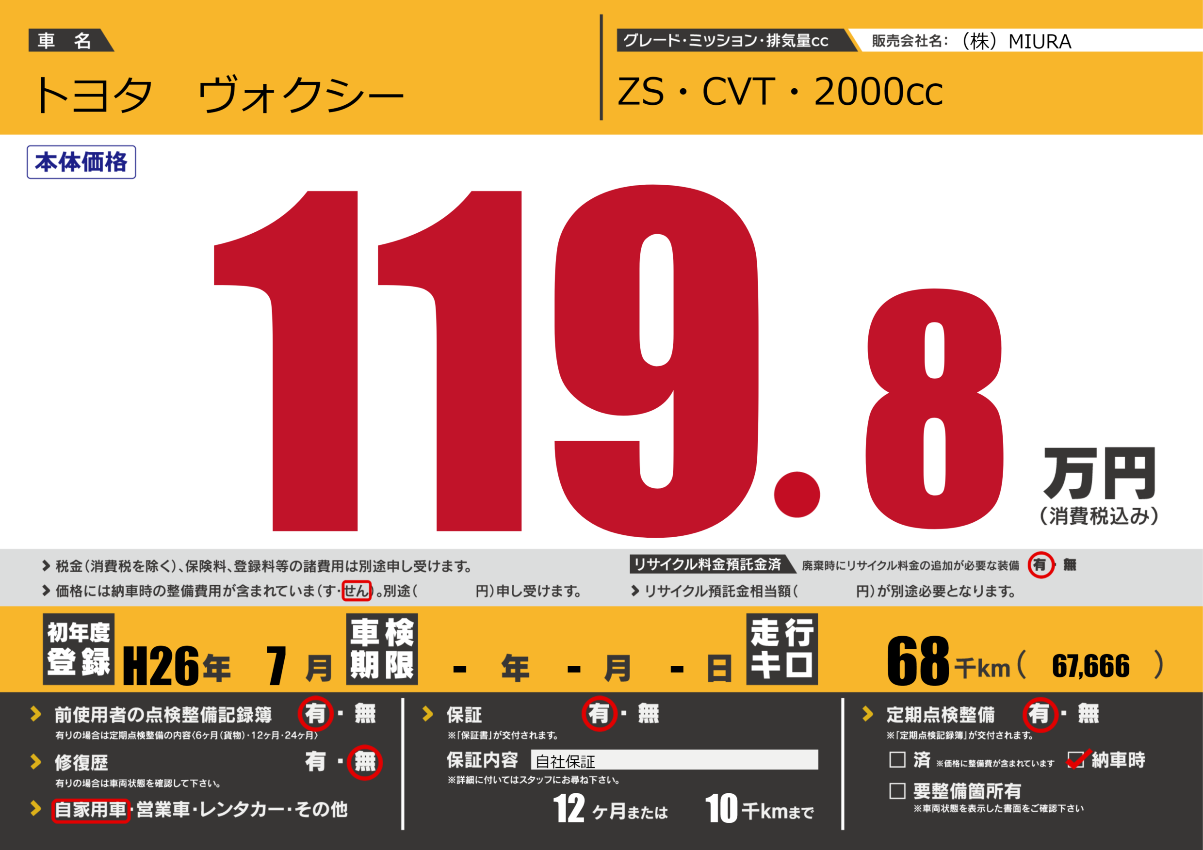 保証付き 保証内容(自社保証) 12ヶ月または(10)千kmまで |