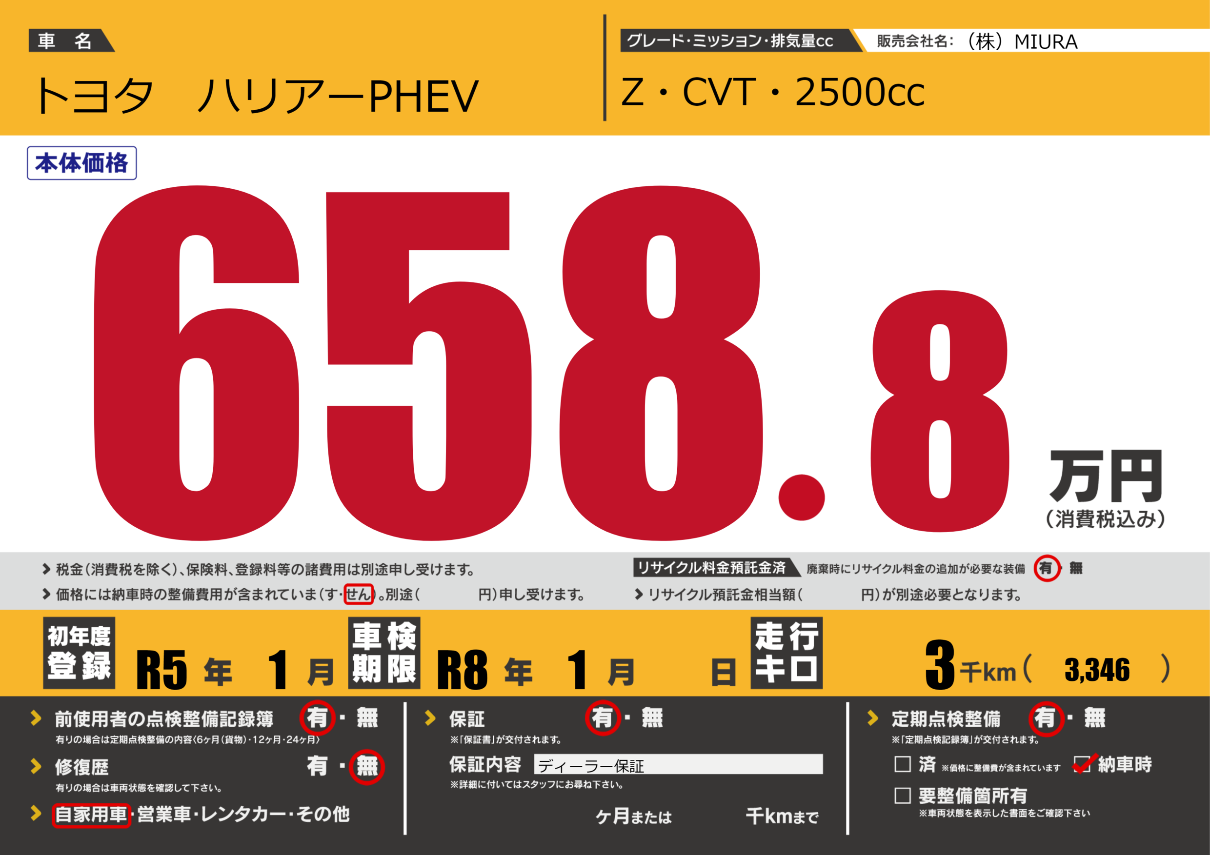 なし | 車検制限 | R8年1月---月 |
