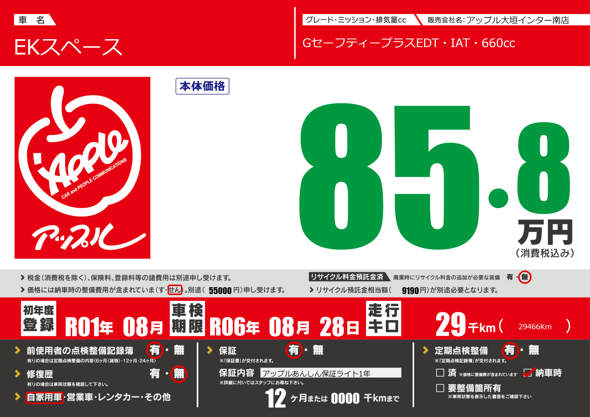 | 走行キロ | 2.9万km | 初年度登録 | R01年08月 |