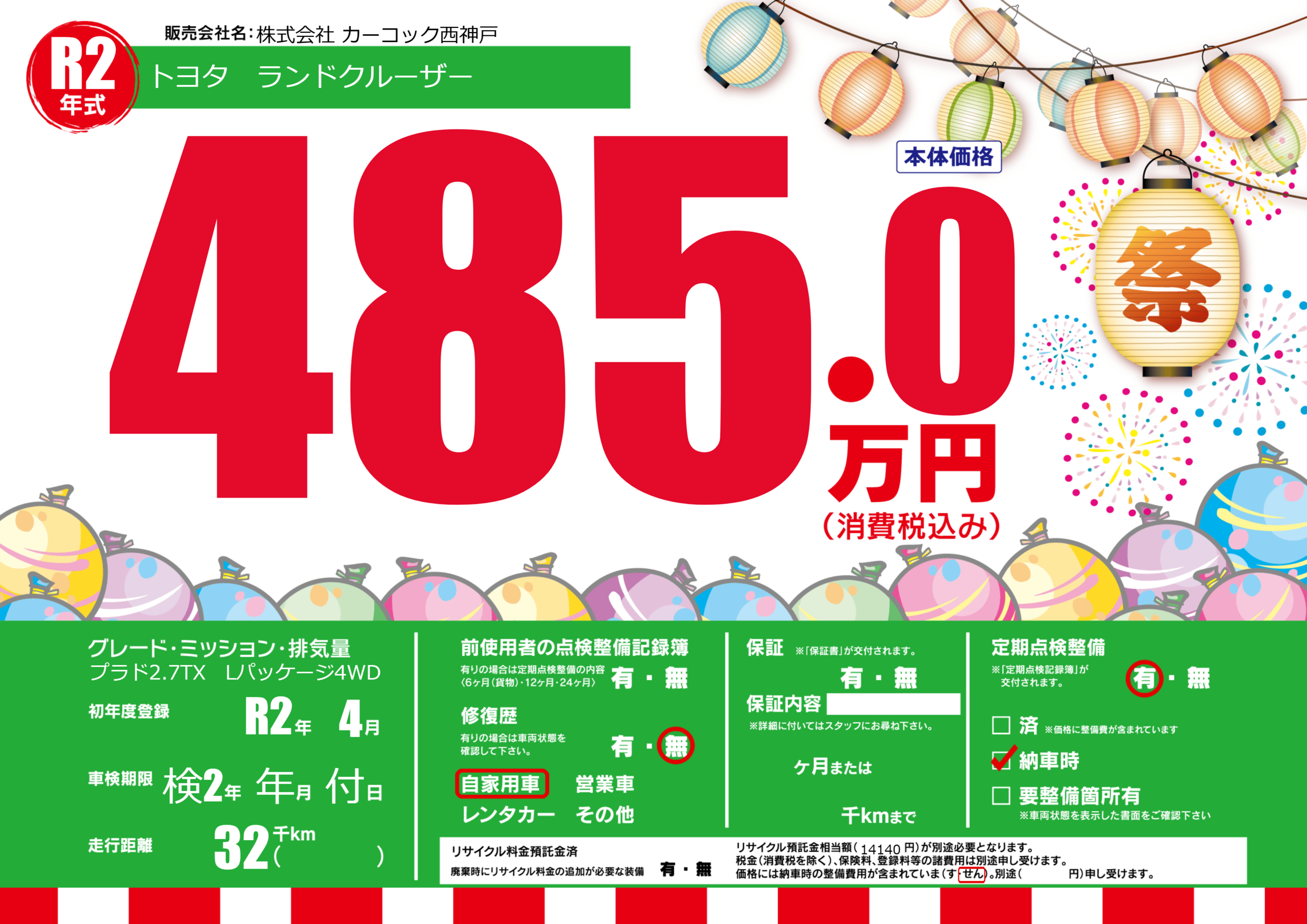 | 定期点検整備 | 定期点検整備あり 納車時あり | ||