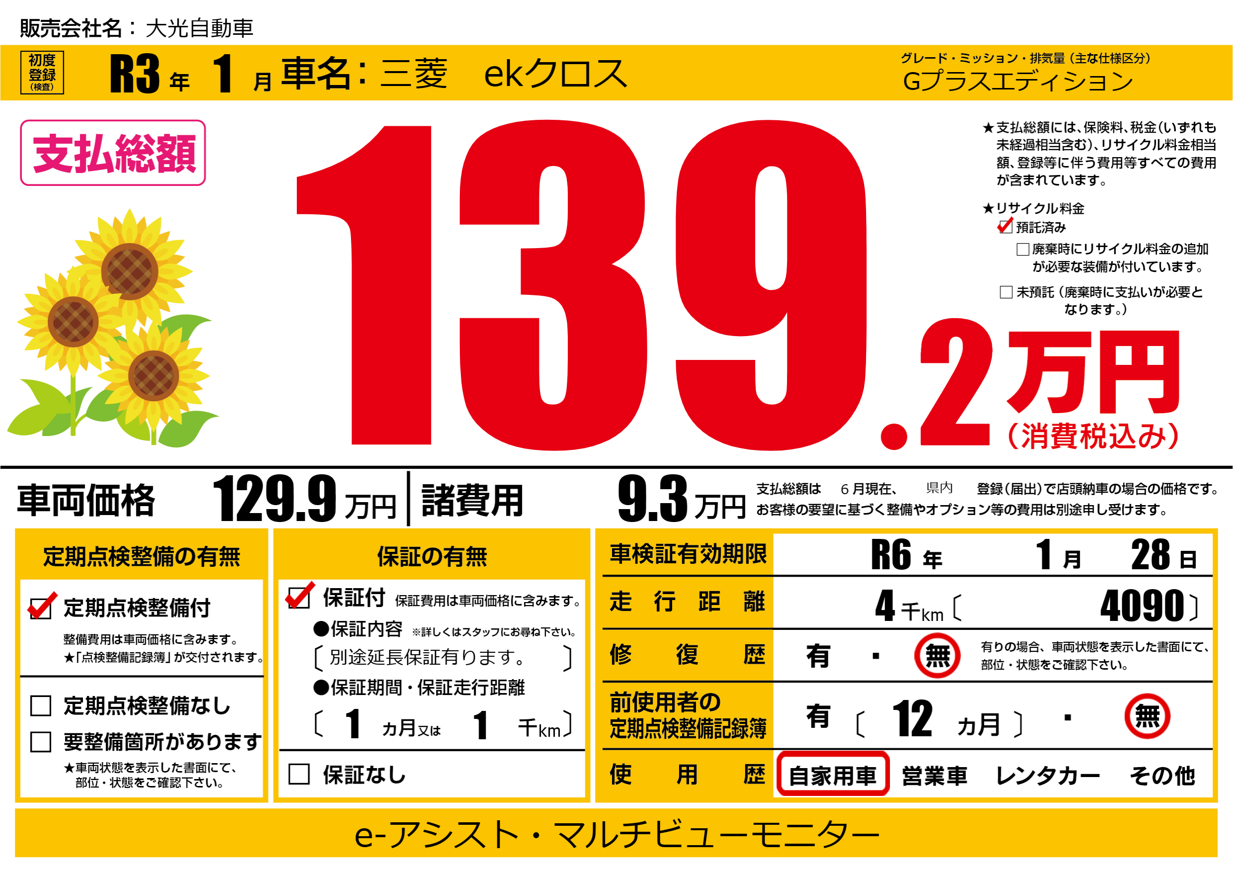| 車検制限 | R6年 1月 28日 | ||