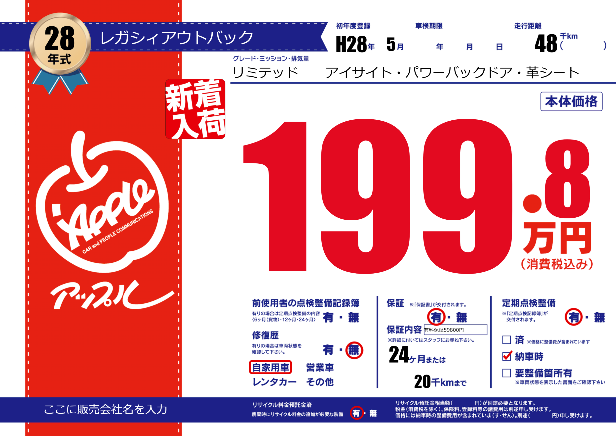 | 定期点検整備 | 定期点検整備あり 納車時あり | ||