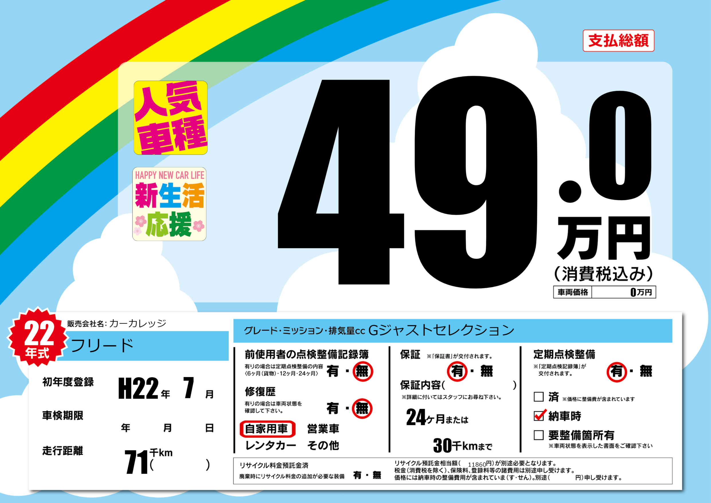 | 走行キロ | 7.1万km | 初年度登録 | H22年7月 |