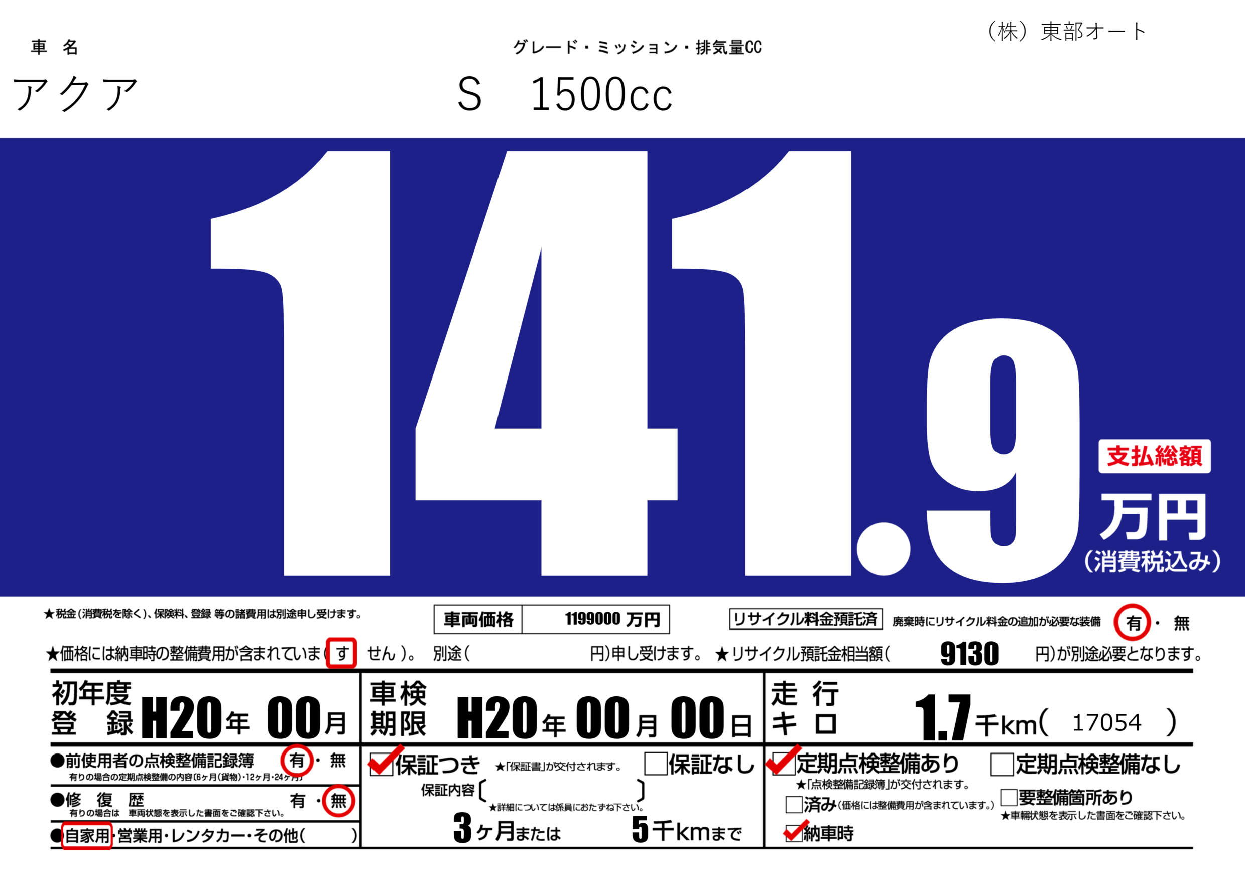 保証付き 保証内容(---) 3ヶ月または(5)千kmまで |