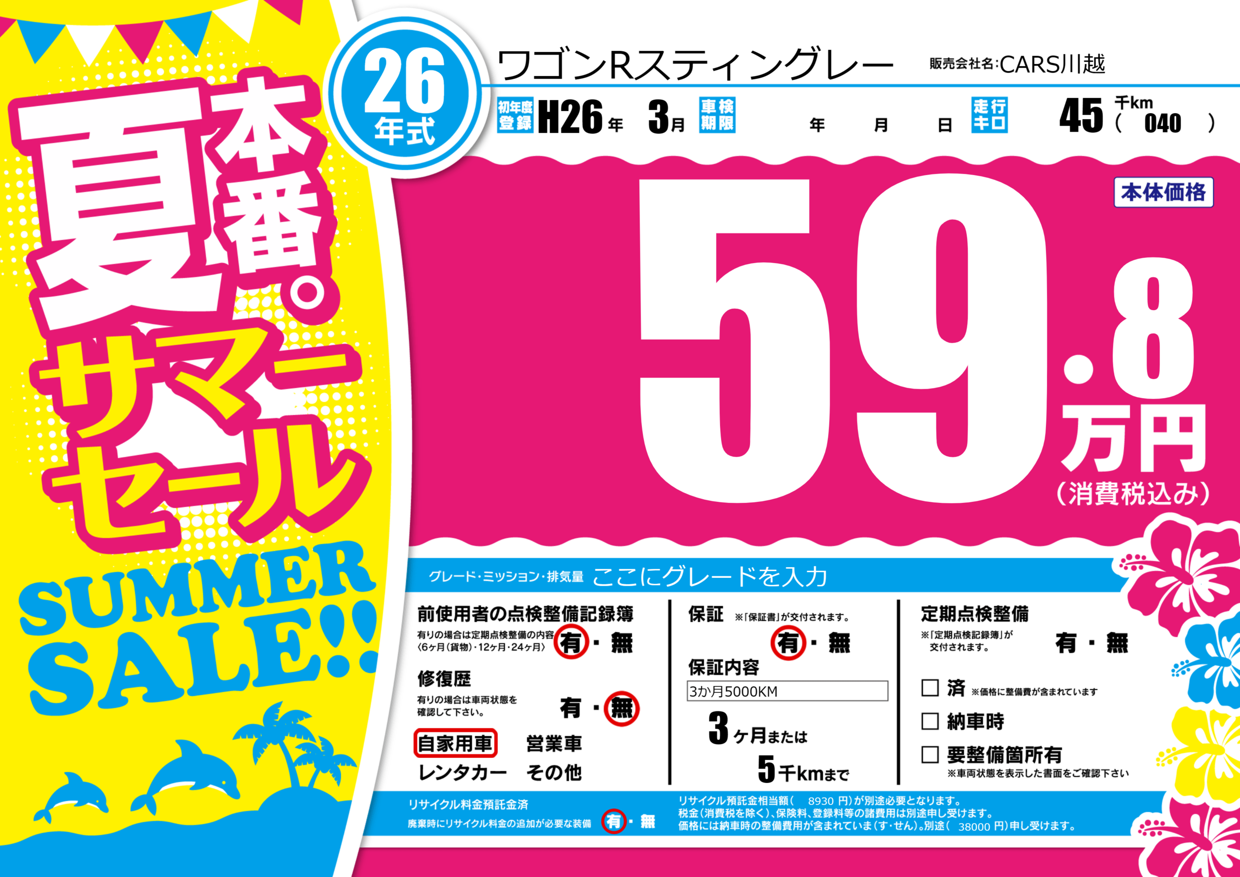 | 走行キロ | 4.5万km | 初年度登録 | H26年3月 |