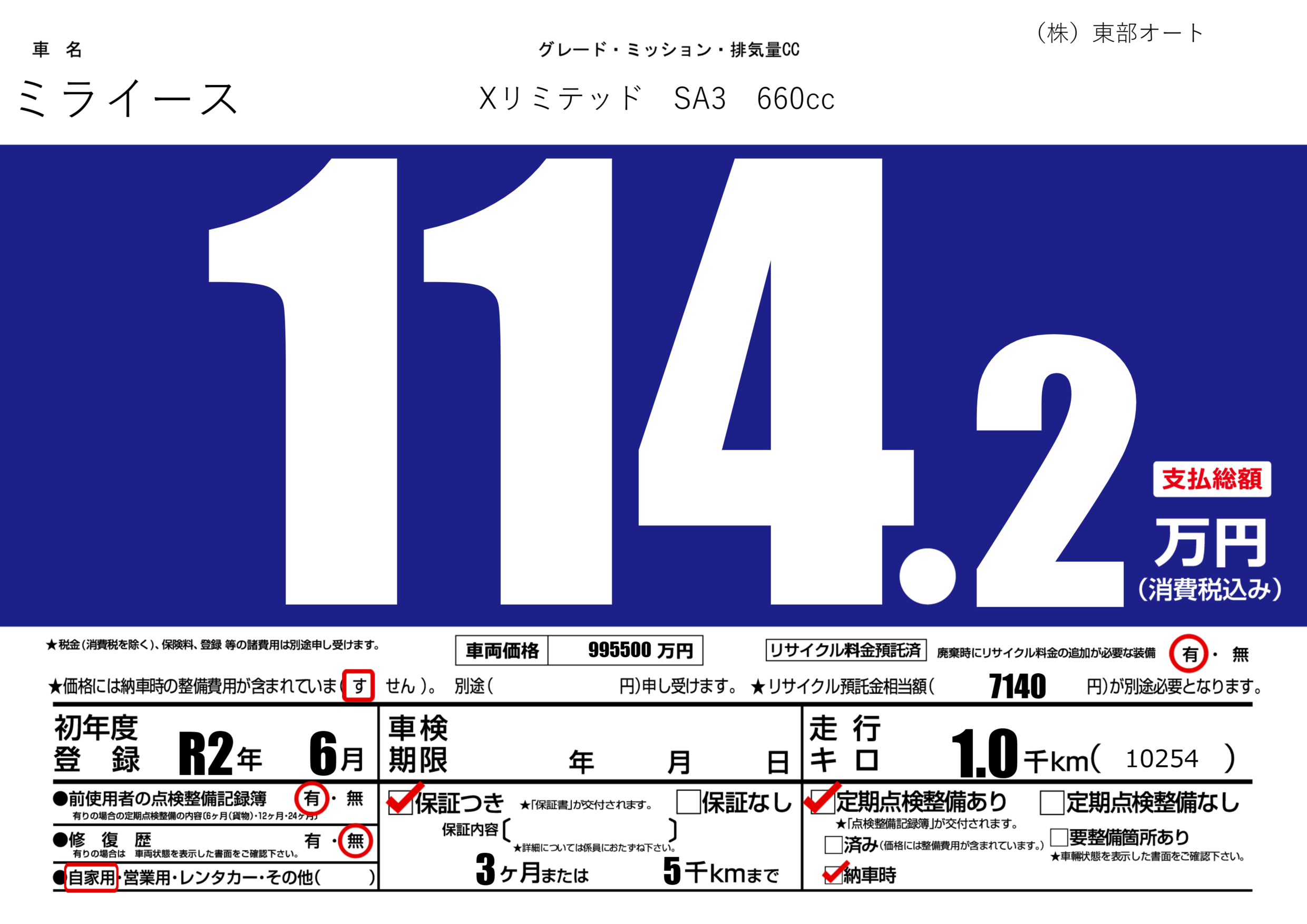保証付き 保証内容(---) 3ヶ月または(5)千kmまで |