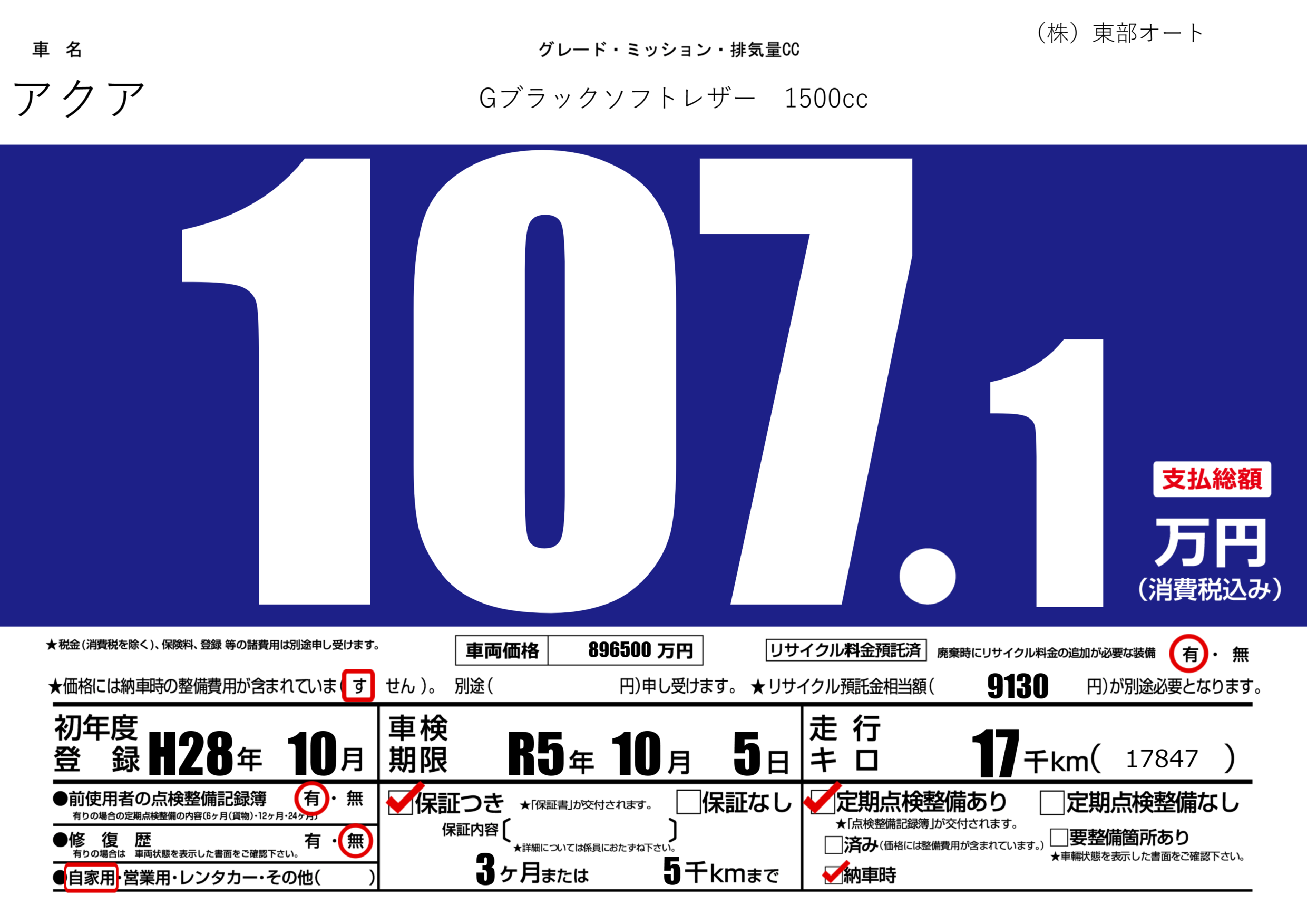 | 定期点検整備 | 定期点検整備あり 納車時あり | ||