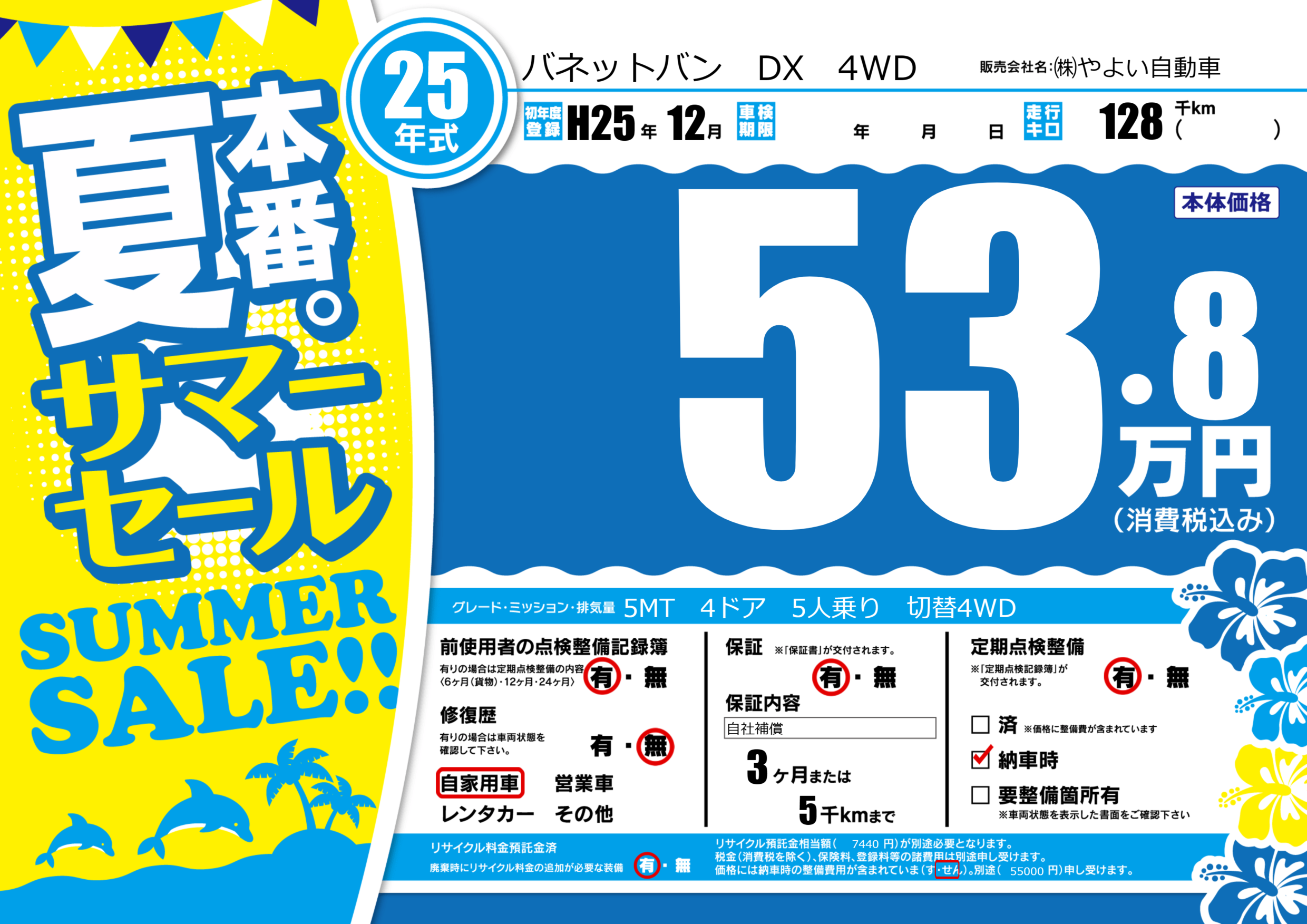 保証付き 保証内容(自社補償) 3ヶ月または(5)千kmまで |