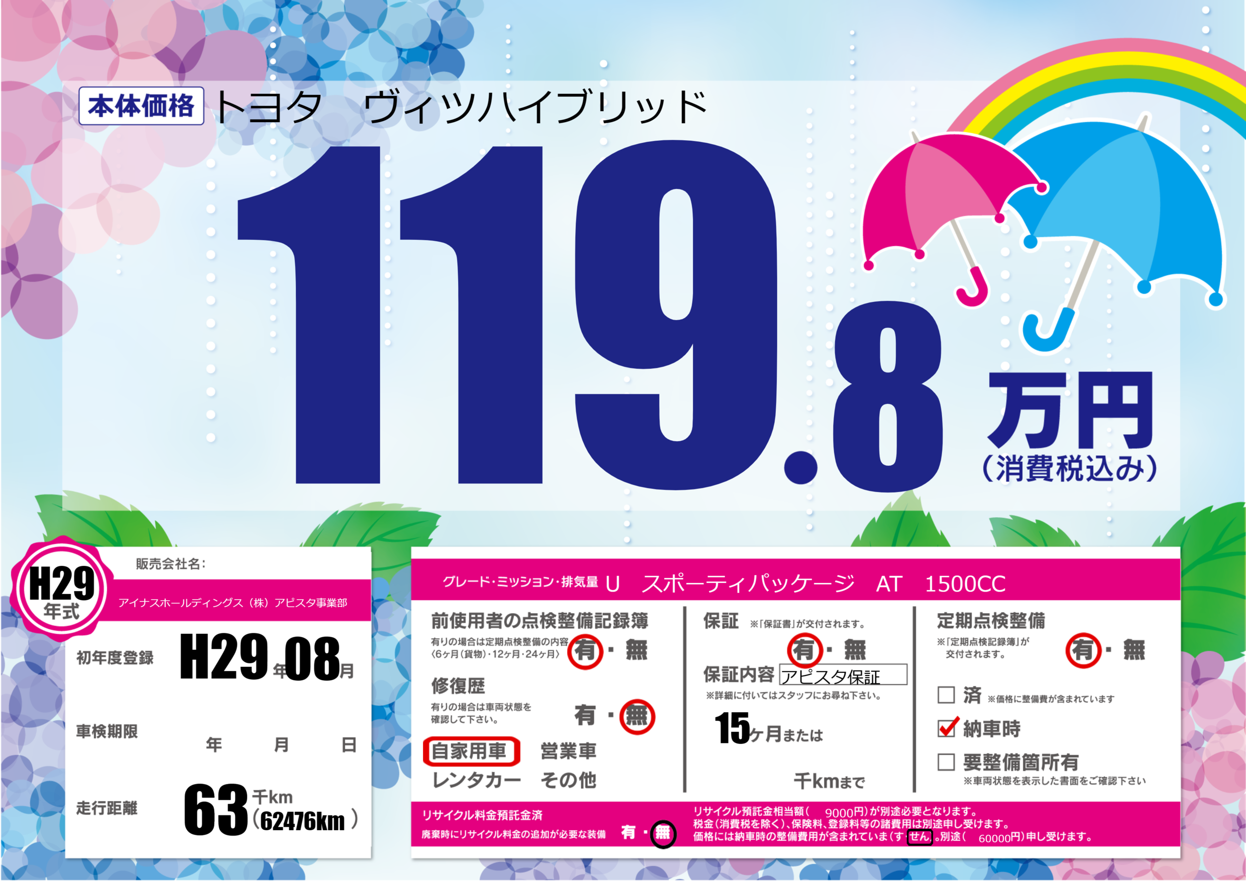 アイナスホールディングス(株)アピスタ事業部の展示車をすべて見る