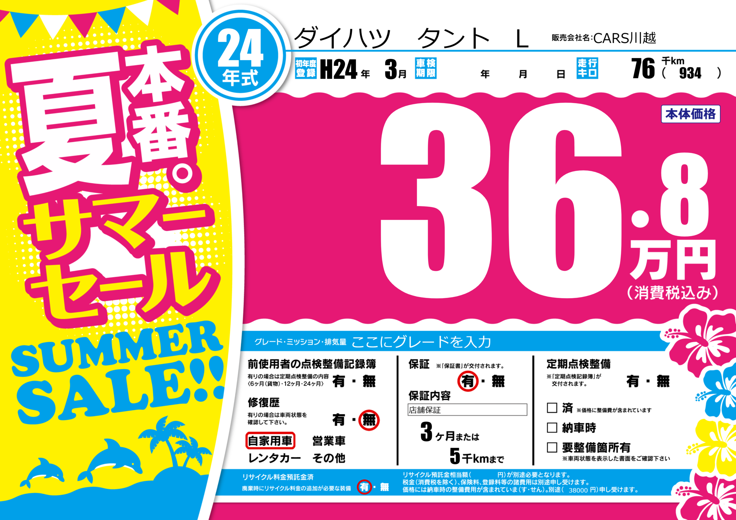 | 走行キロ | 7.6万km | 初年度登録 | H24年3月 |