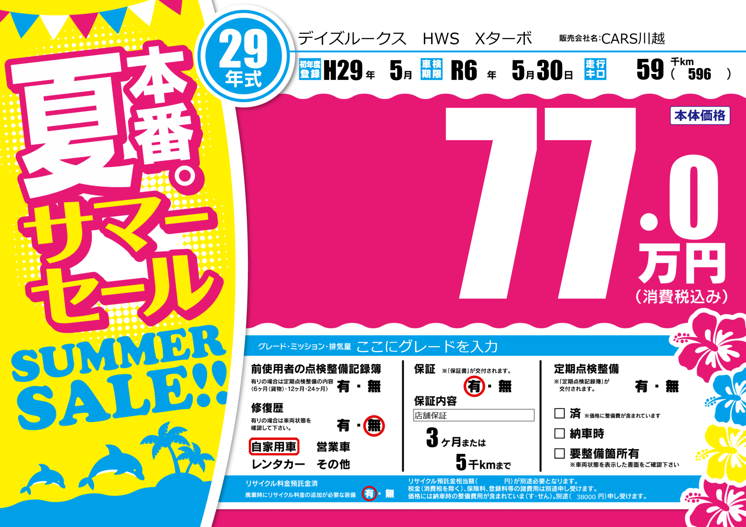 | 走行キロ | 5.9万km | 初年度登録 | H29年5月 |
