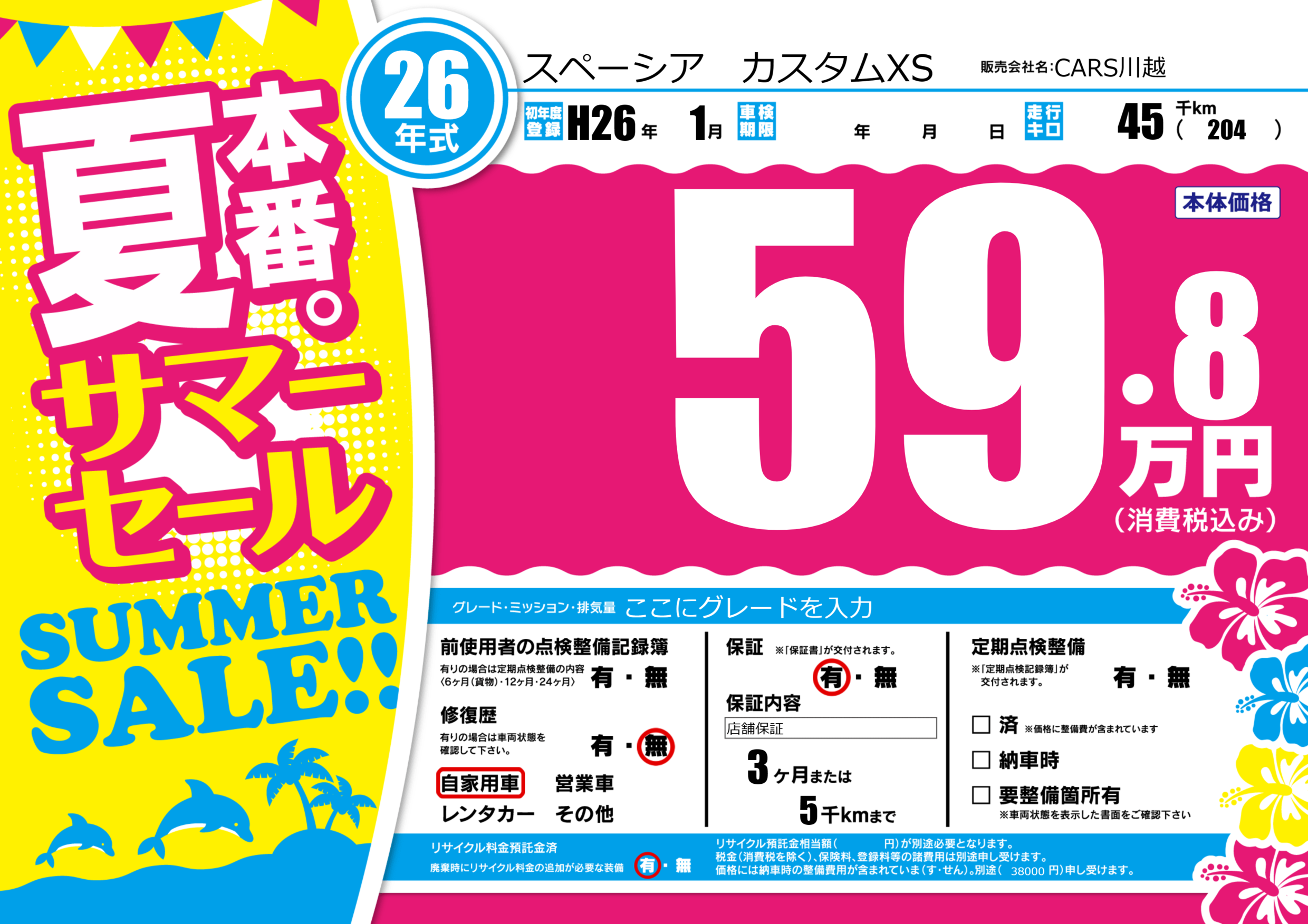 | 走行キロ | 4.5万km | 初年度登録 | H26年1月 |