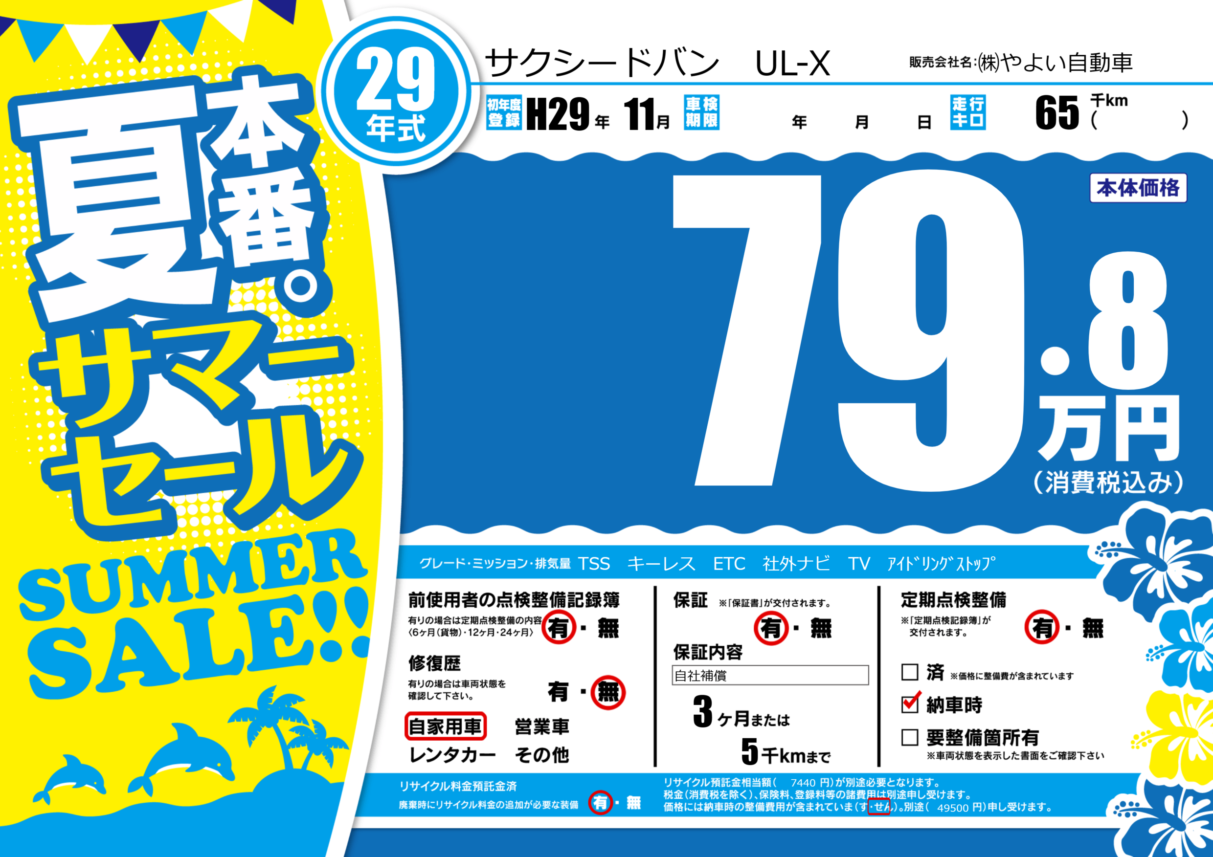 | 走行キロ | 6.5万km | 初年度登録 | H29年11月 |