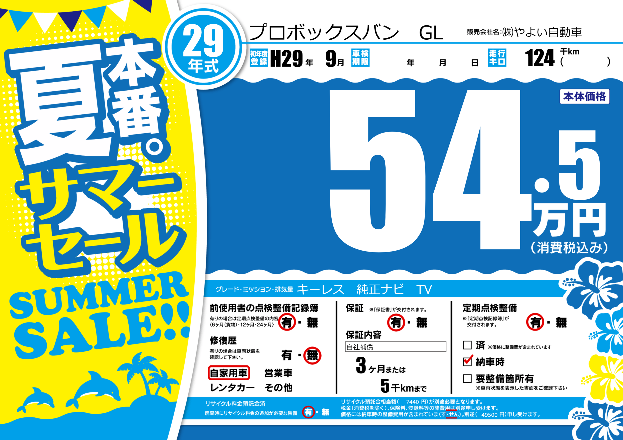 | 走行キロ | 12.4万km | 初年度登録 | H29年9月 |