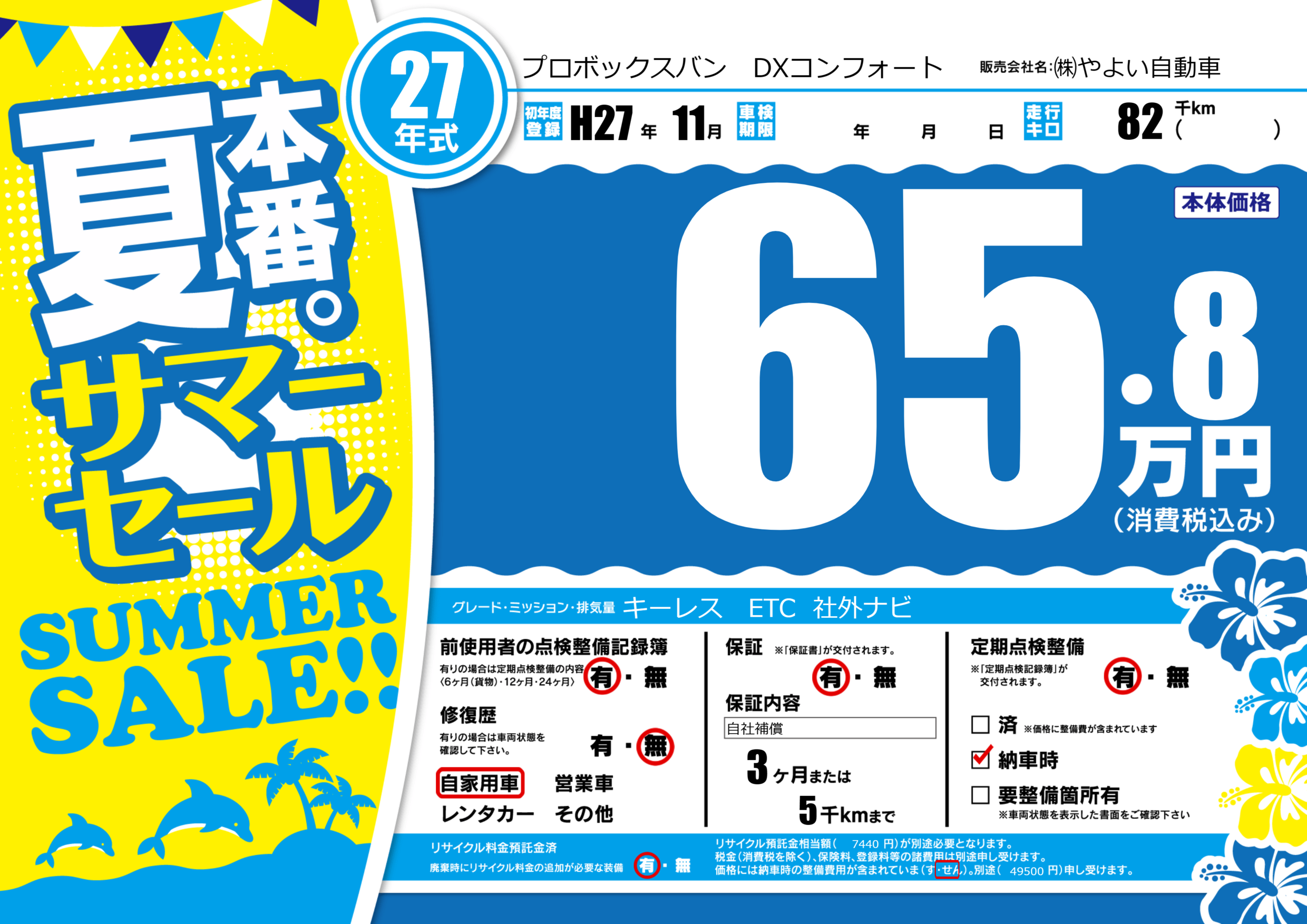 | 走行キロ | 8.2万km | 初年度登録 | H27年11月 |