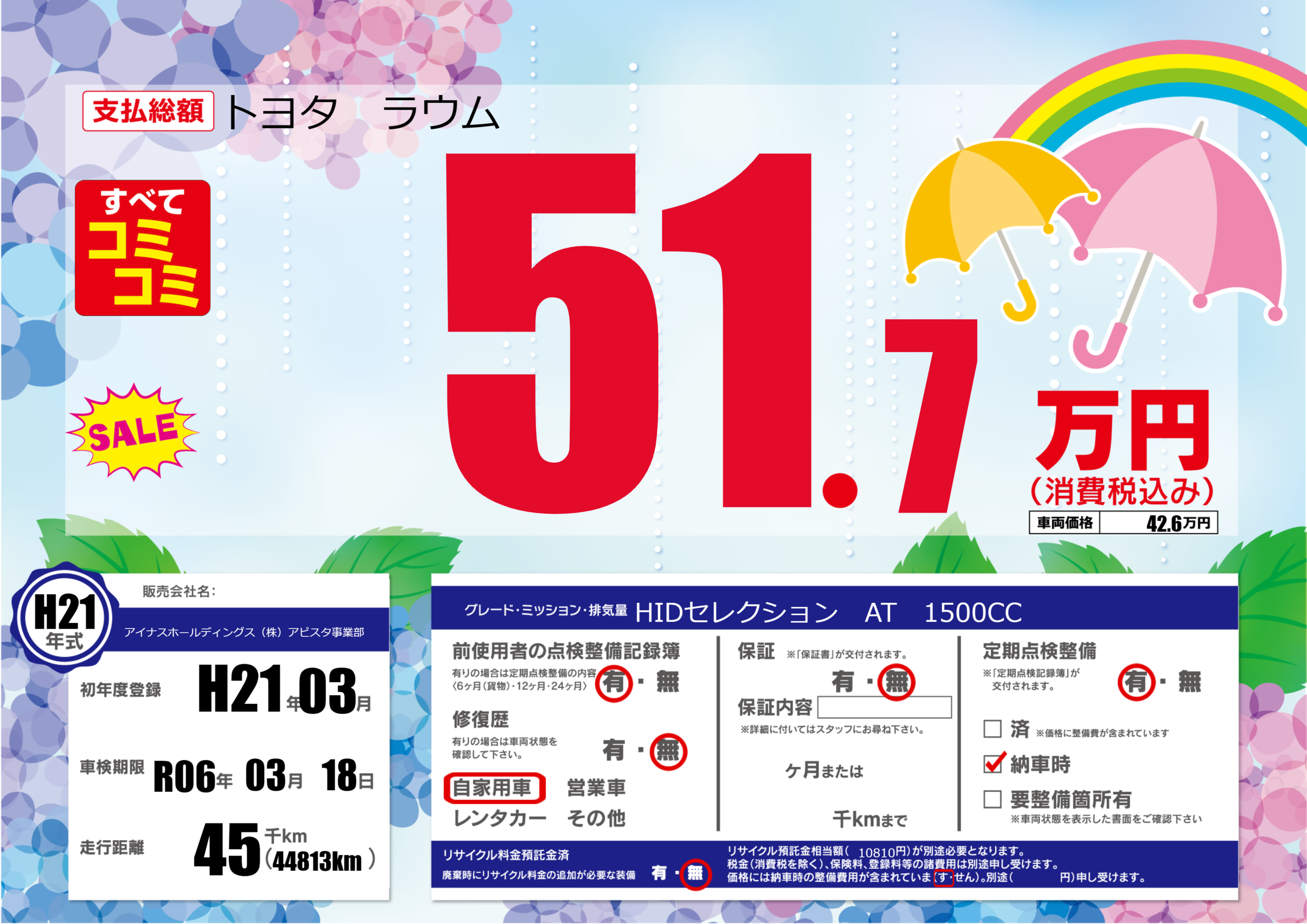 あり | 車検制限 | R06年03月18月 |