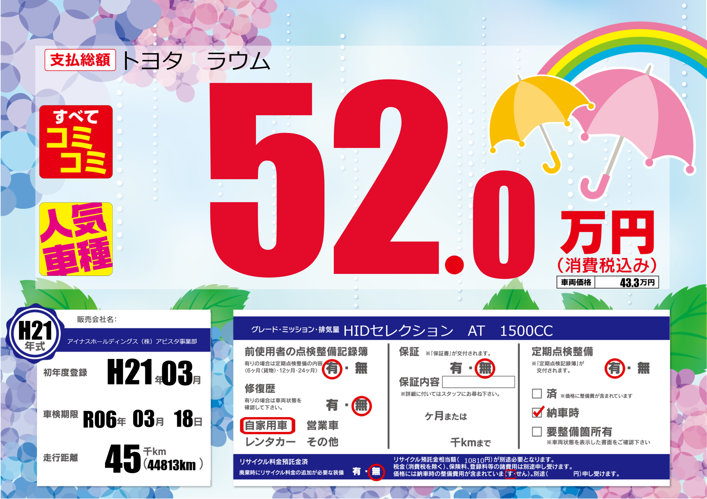 あり | 車検制限 | R06年03月18月 |