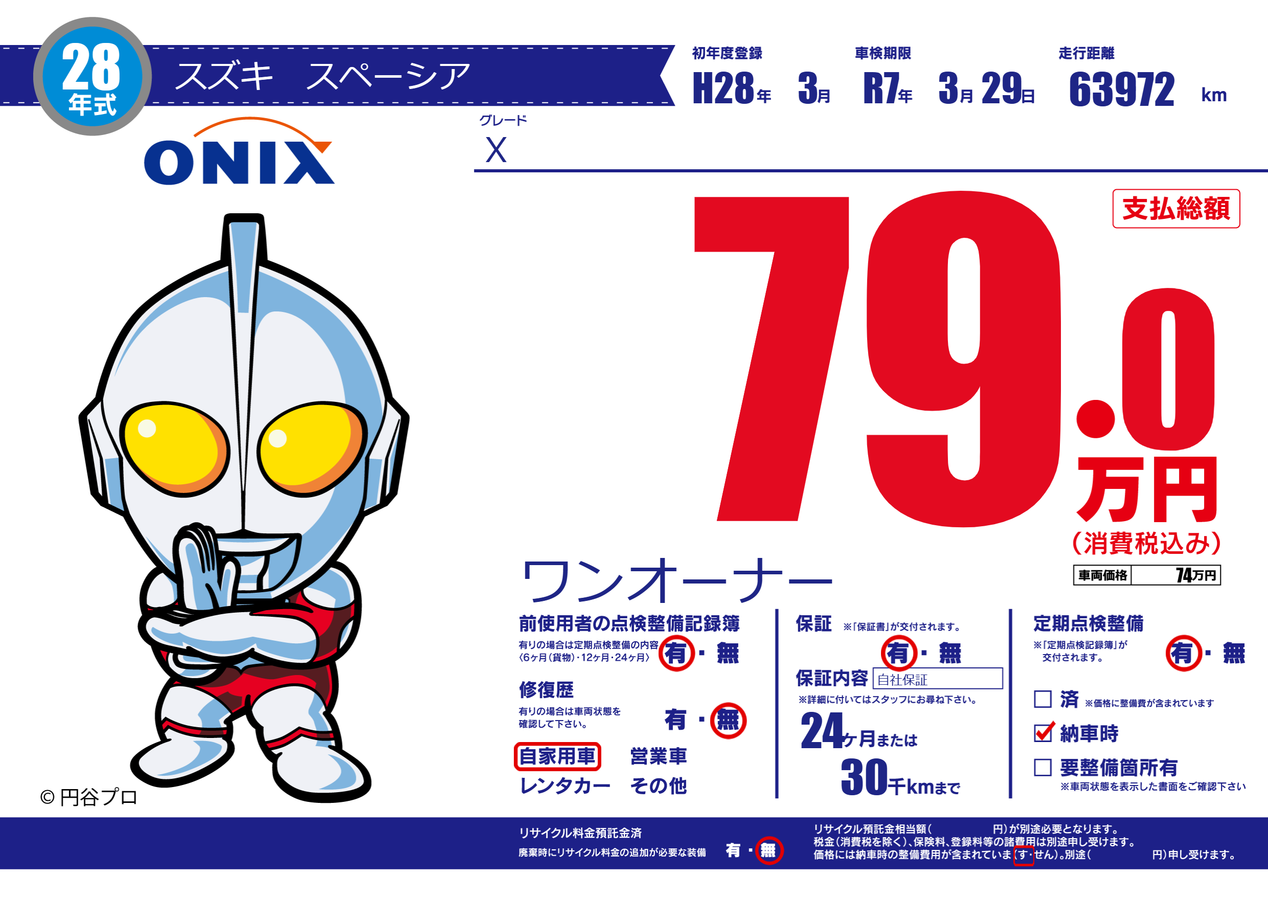 | 車検制限 | R7年 3月 29日 | ||
