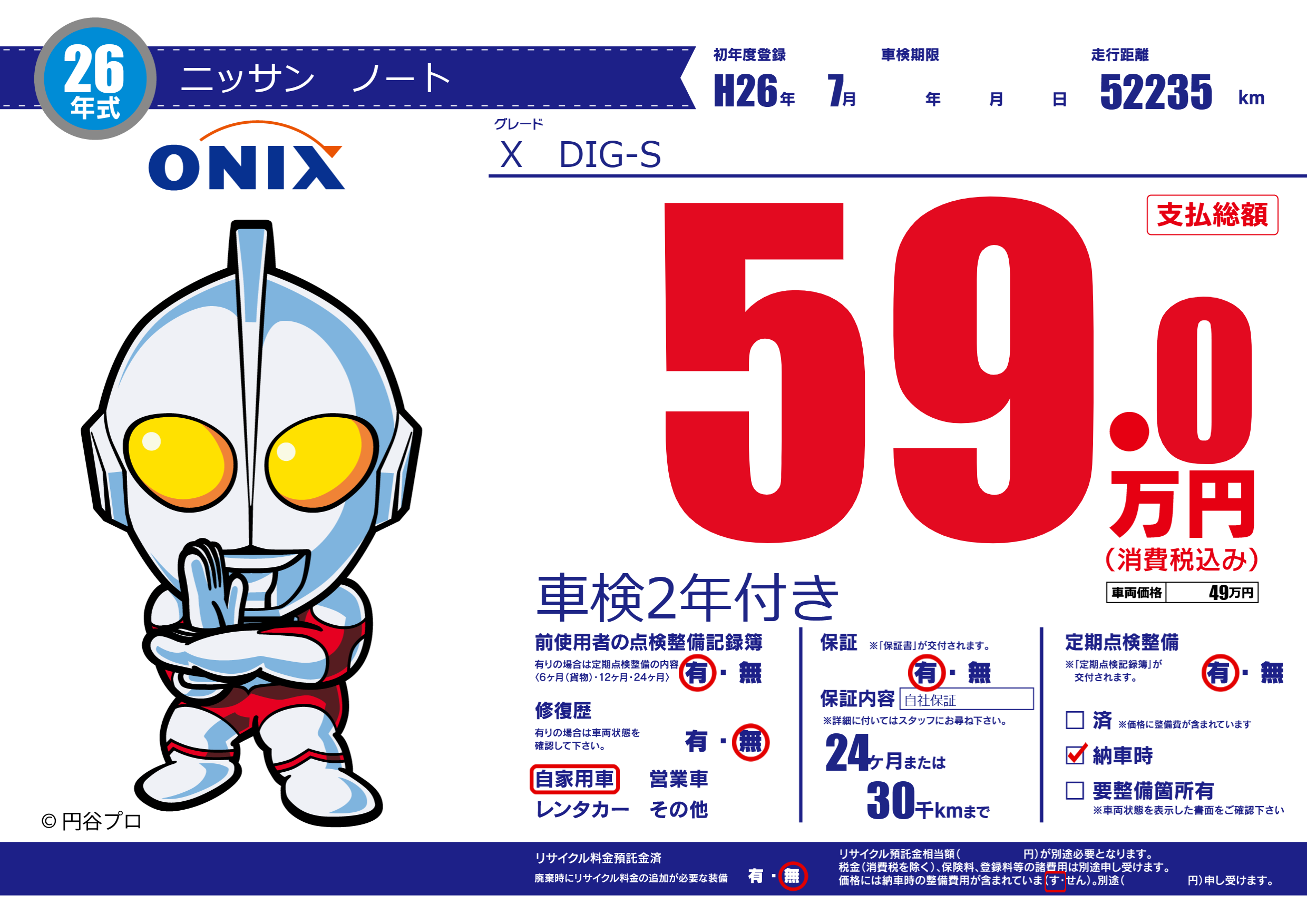 | 車名 | ニッサン ノート | グレード ミッション 排気量 |