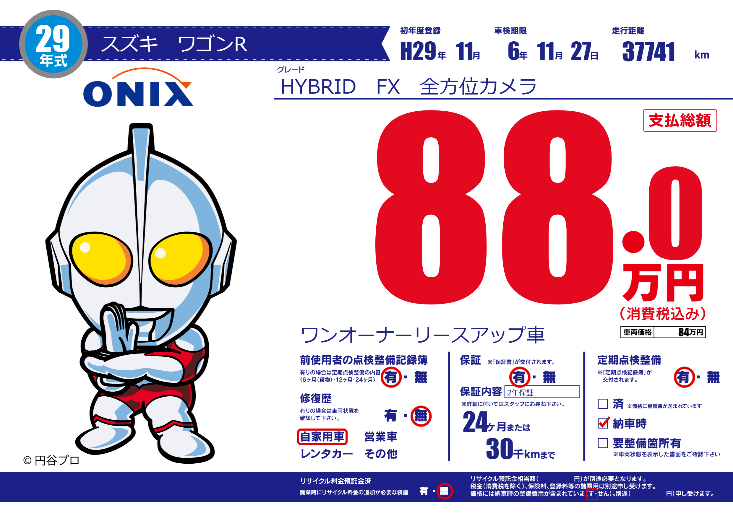 保証付き 保証内容(2年保証) 24ヶ月または(30)千kmまで |