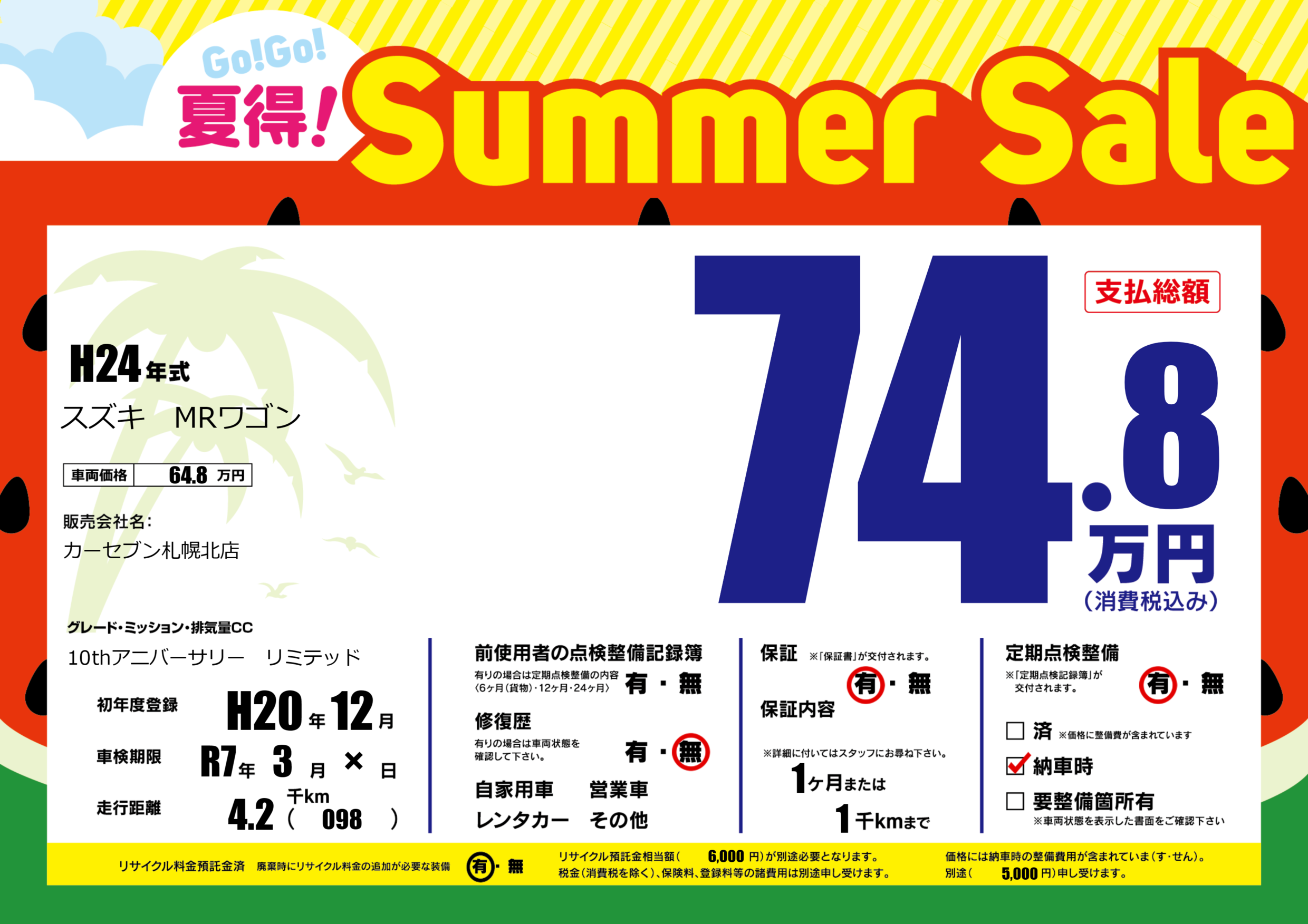 | 走行キロ | 0.4万km | 初年度登録 | H20年12月 |