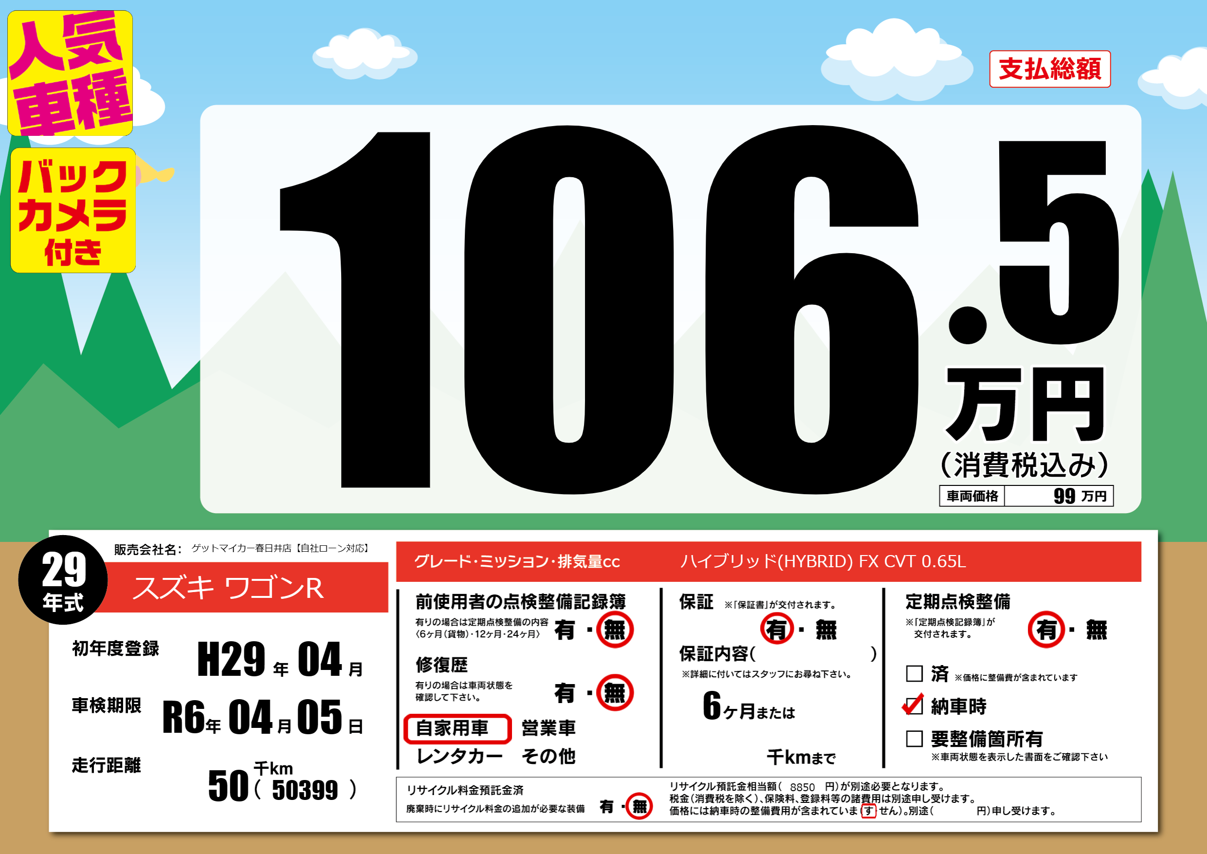 定期点検整備 定期点検整備あり 納車時あり
