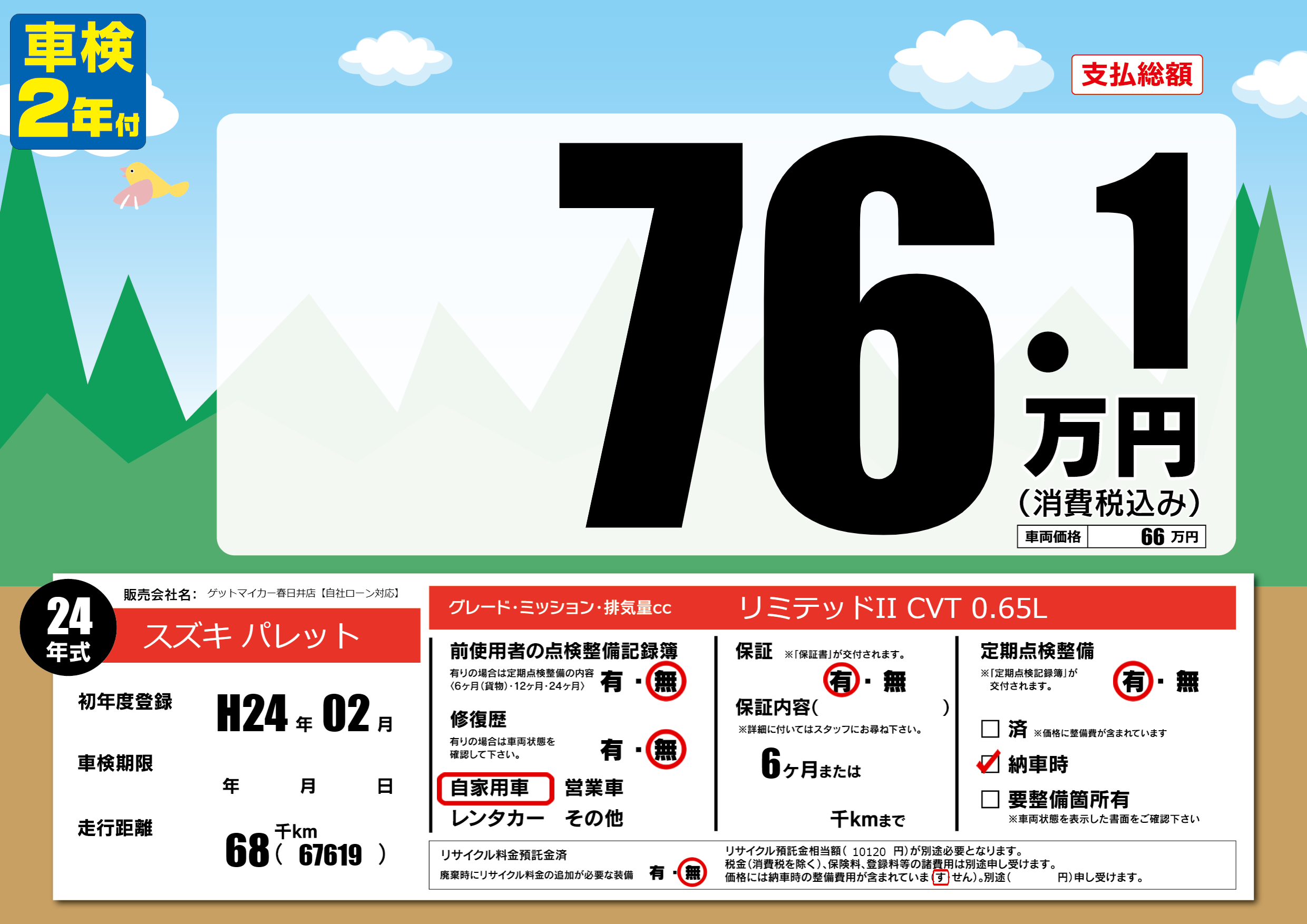 | 車検制限 | - 年 - 月 - 日 | ||