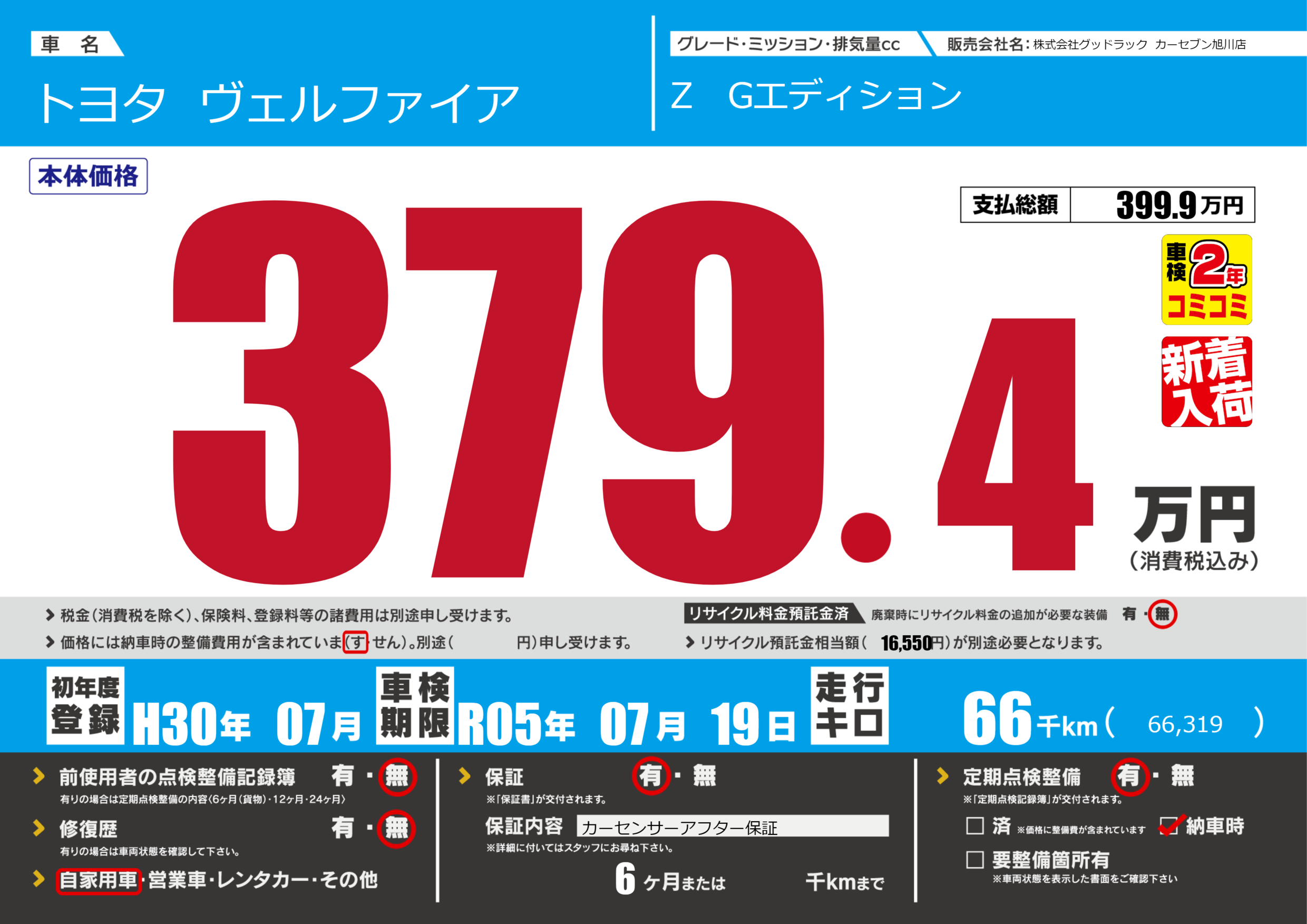 | 定期点検整備 | 定期点検整備あり 納車時あり | ||