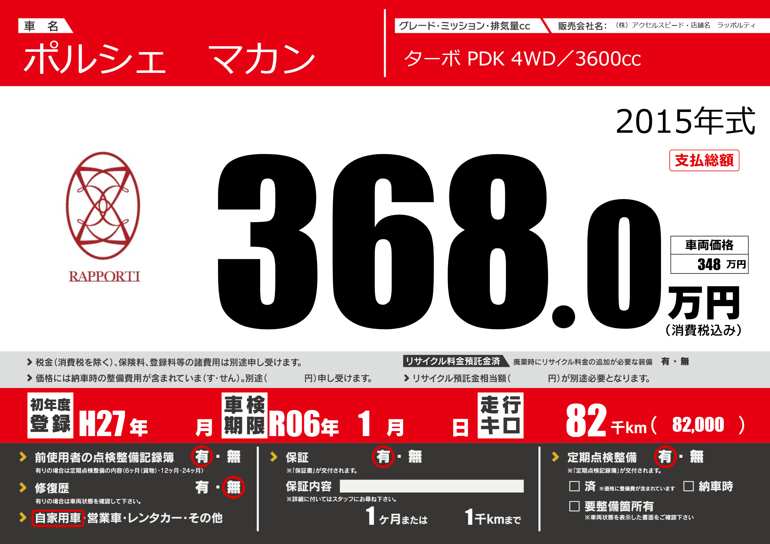 | 車名 | ポルシェ マカン | グレード ミッション 排気量 |