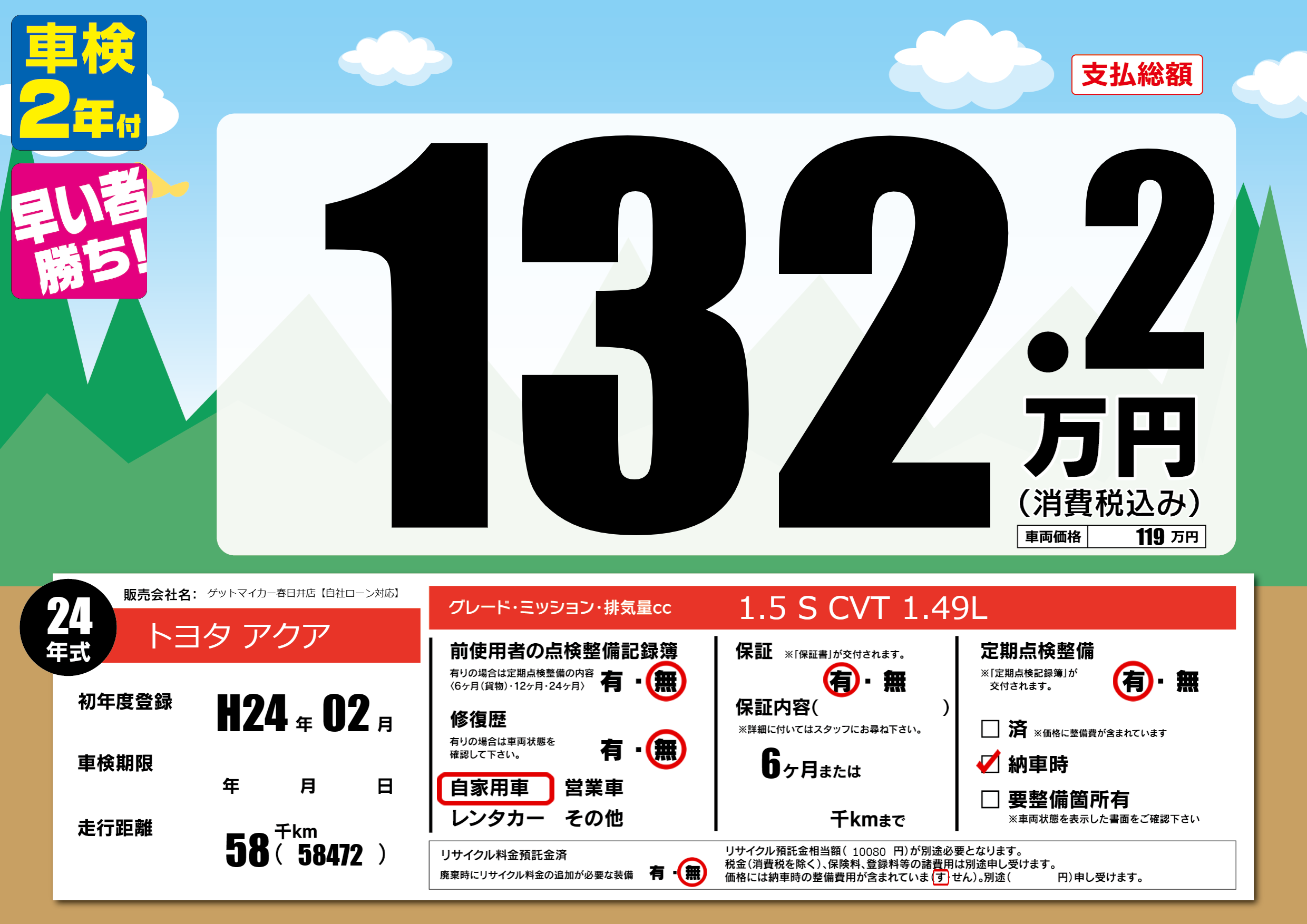 株式会社ケーオート ゲットマイカー春日井店の展示車