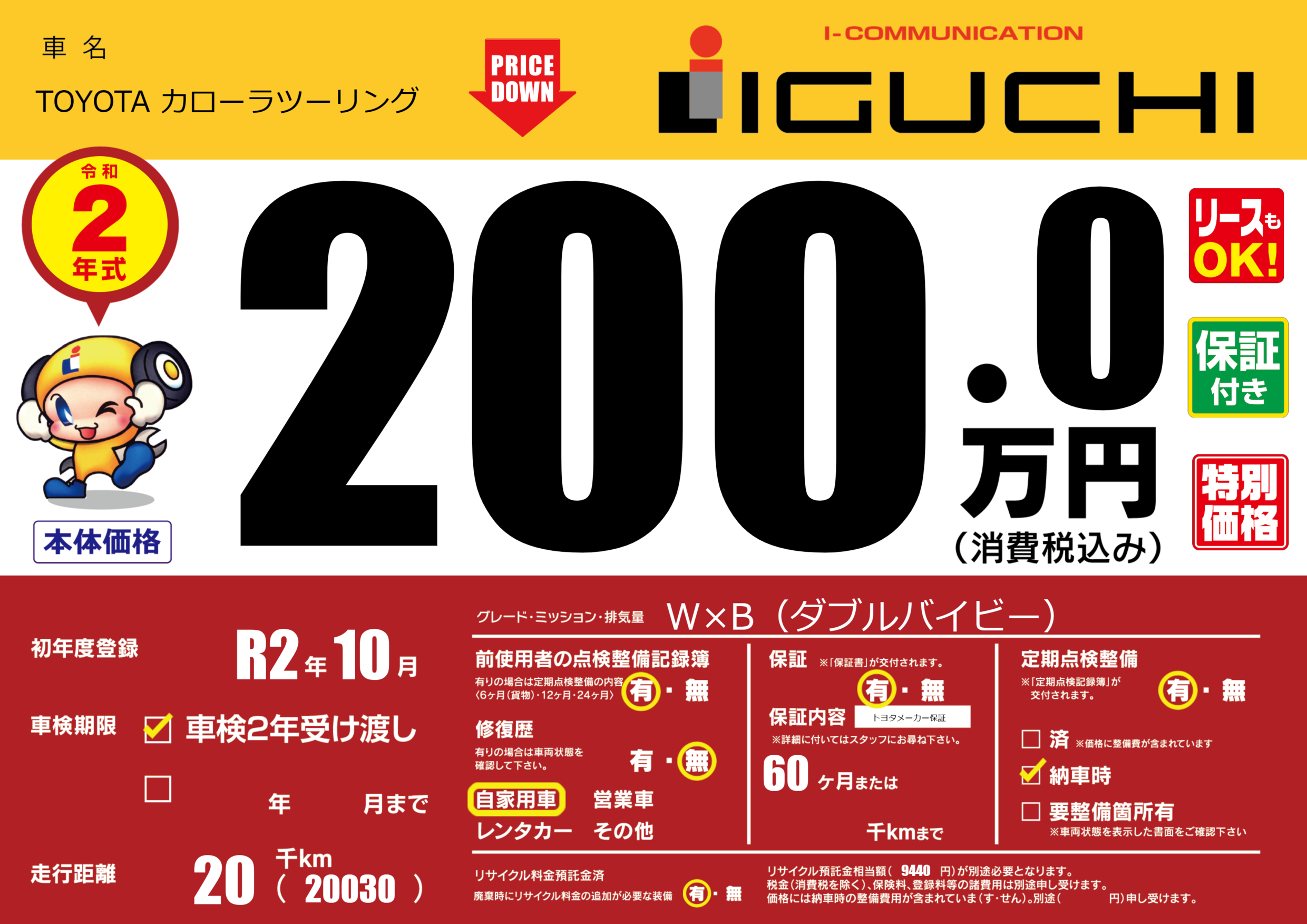 | 走行キロ | 2万km | 初年度登録 | R2年10月 |