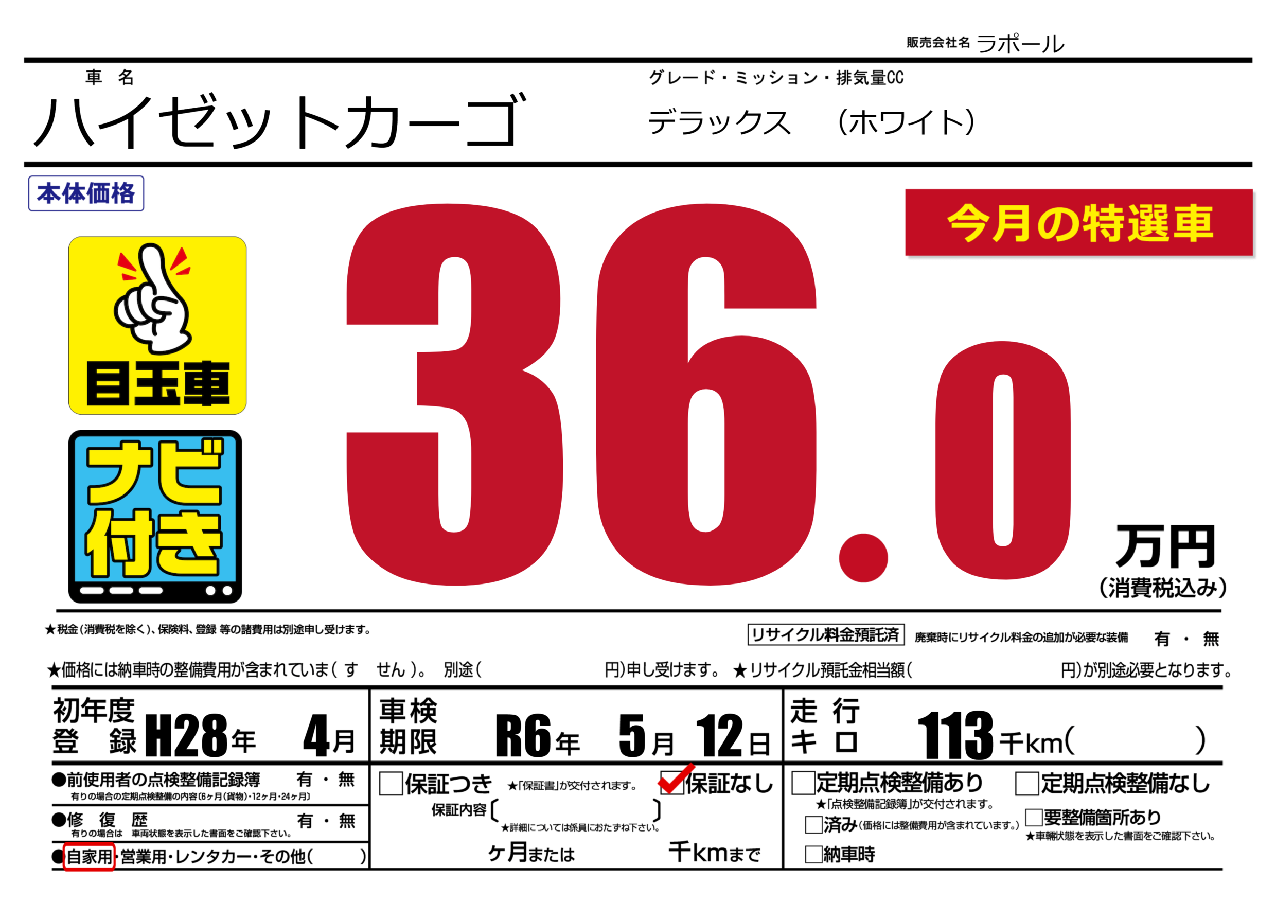 なし | 車検制限 | R6年5月12月 |