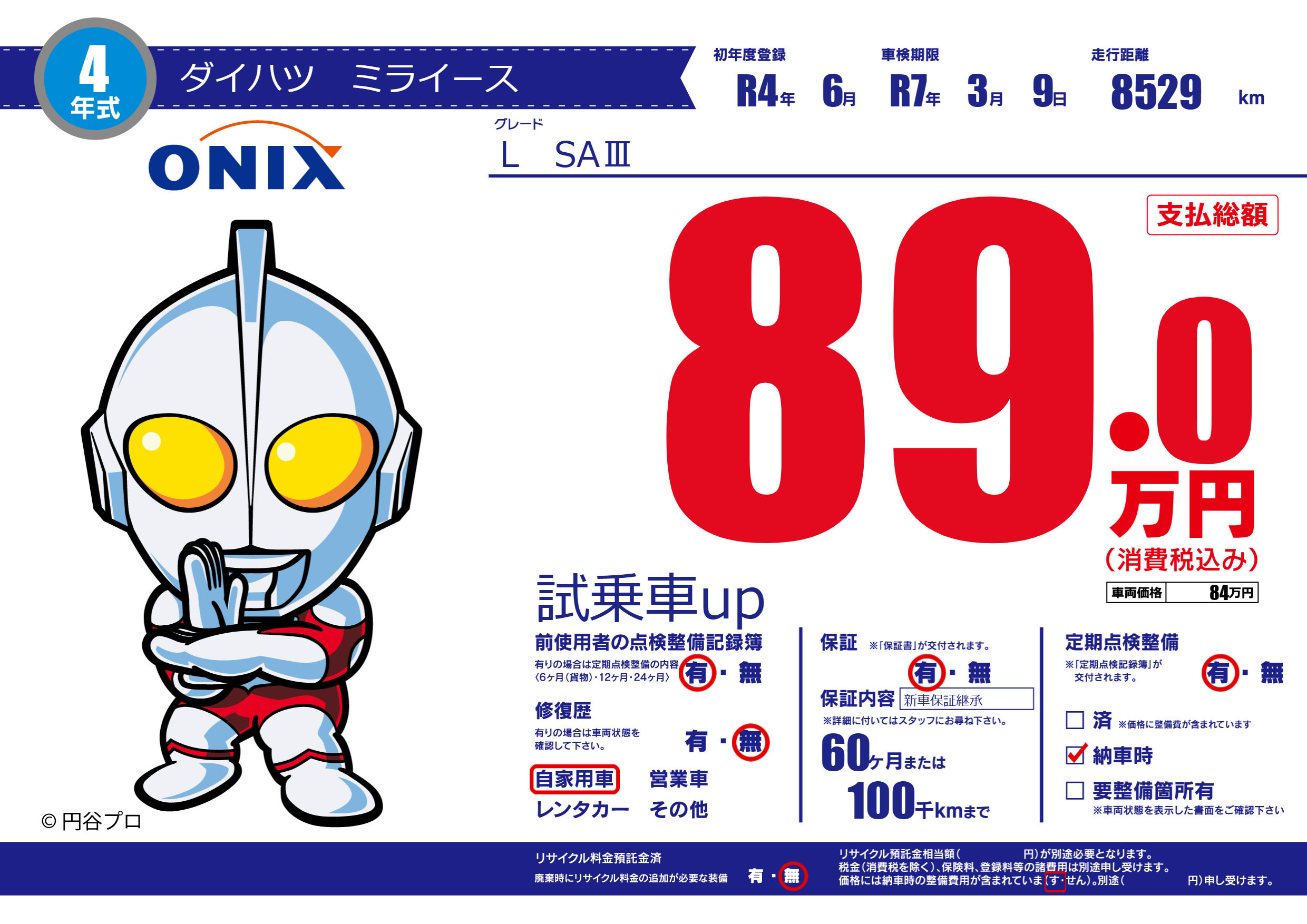| 車検制限 | R7年 3月 9日 | ||