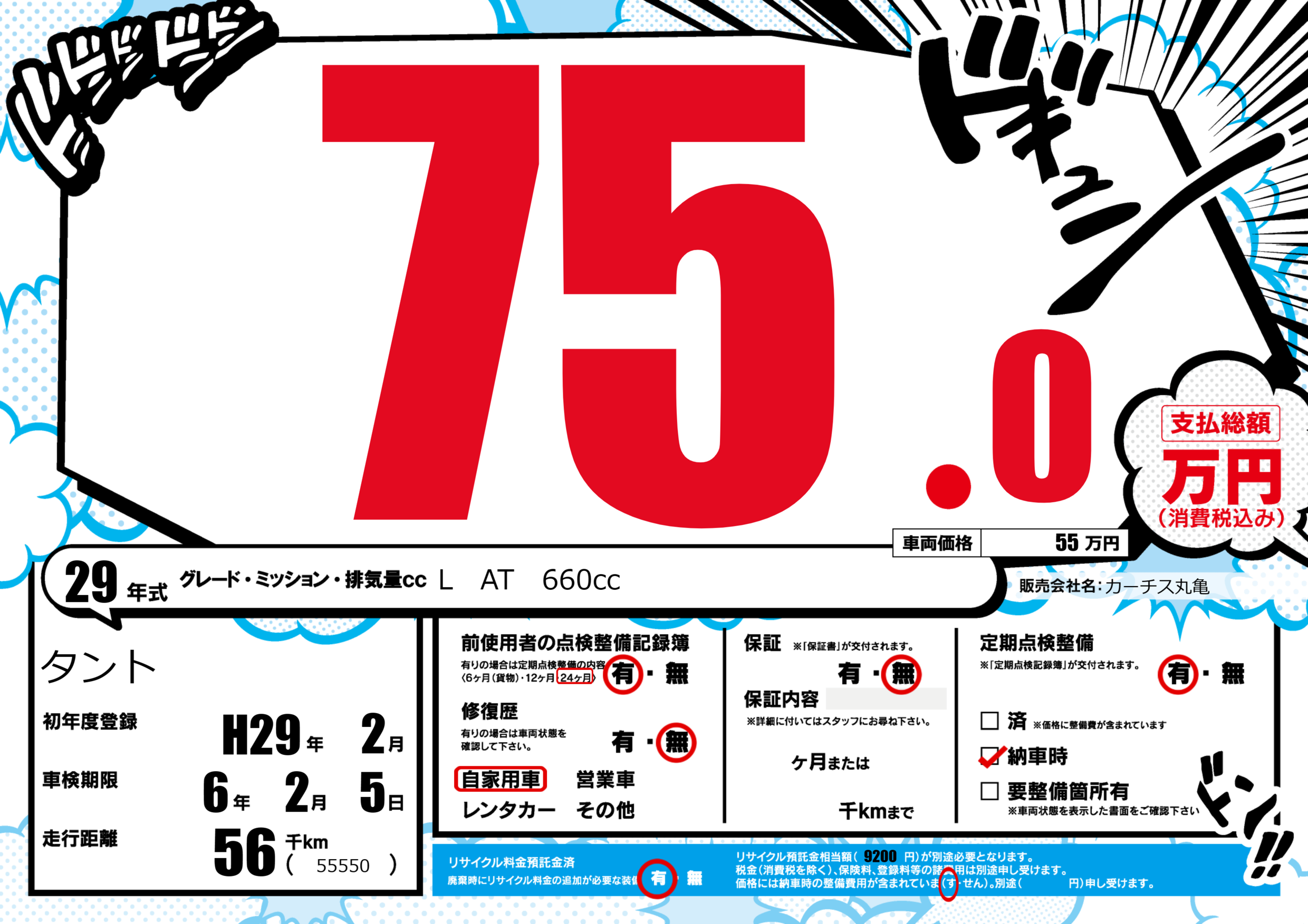 | 走行キロ | 5.6万km | 初年度登録 | H29年2月 |