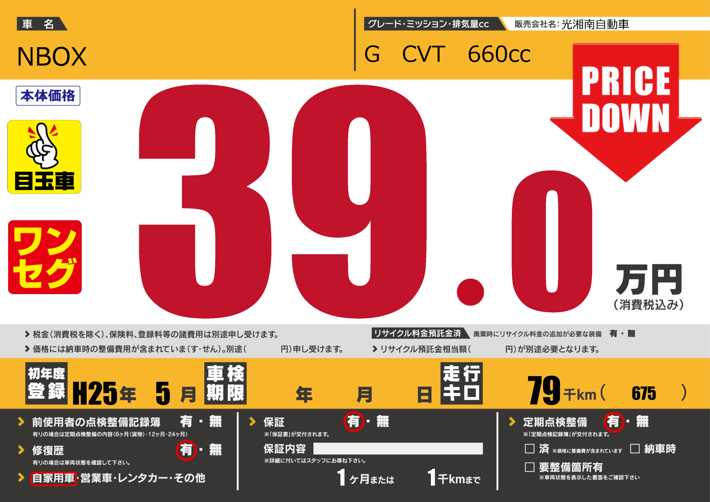 | 車名 | NBOX | グレード ミッション 排気量 |