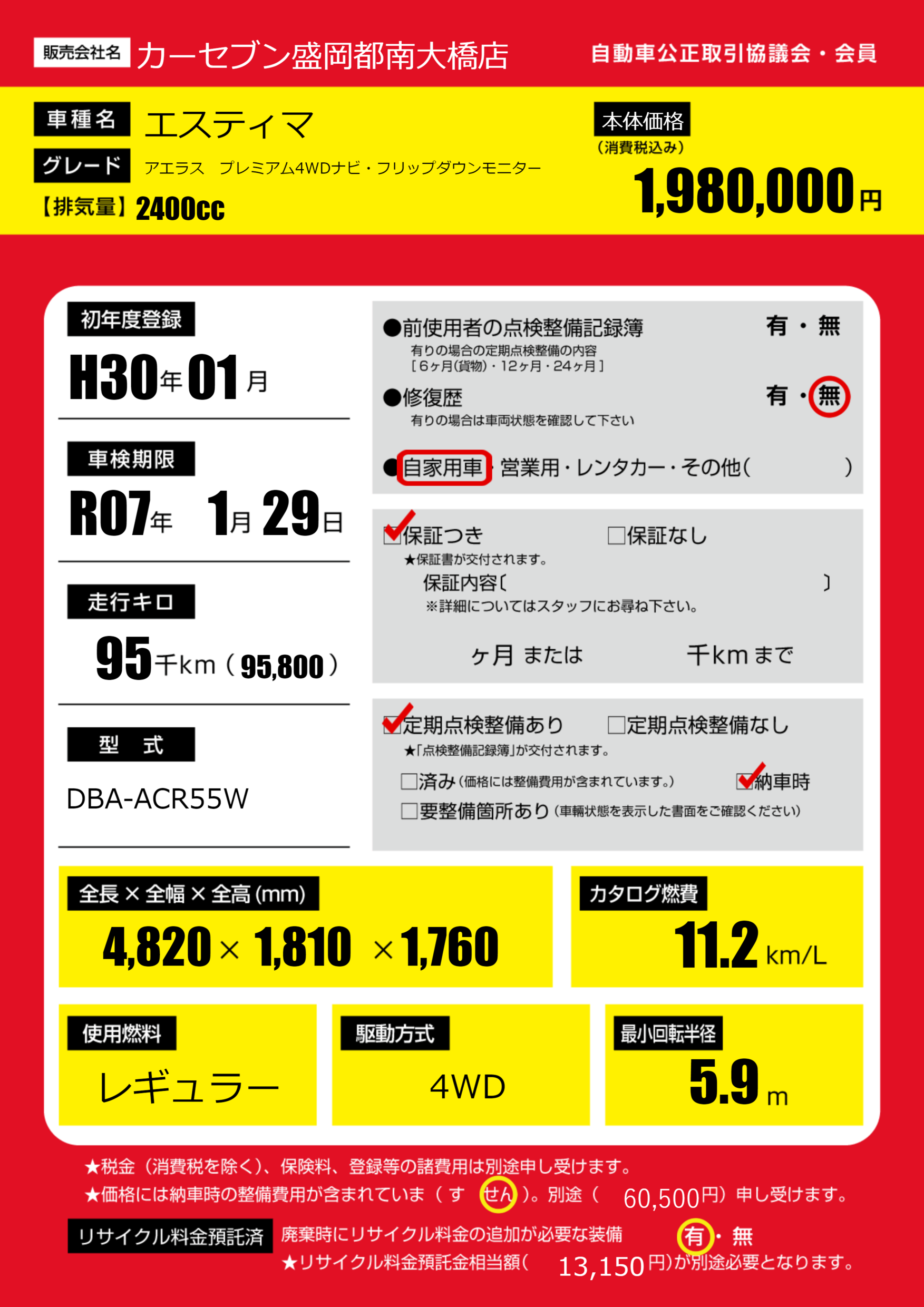 | 車名 | エスティマ | グレード ミッション 排気量 |