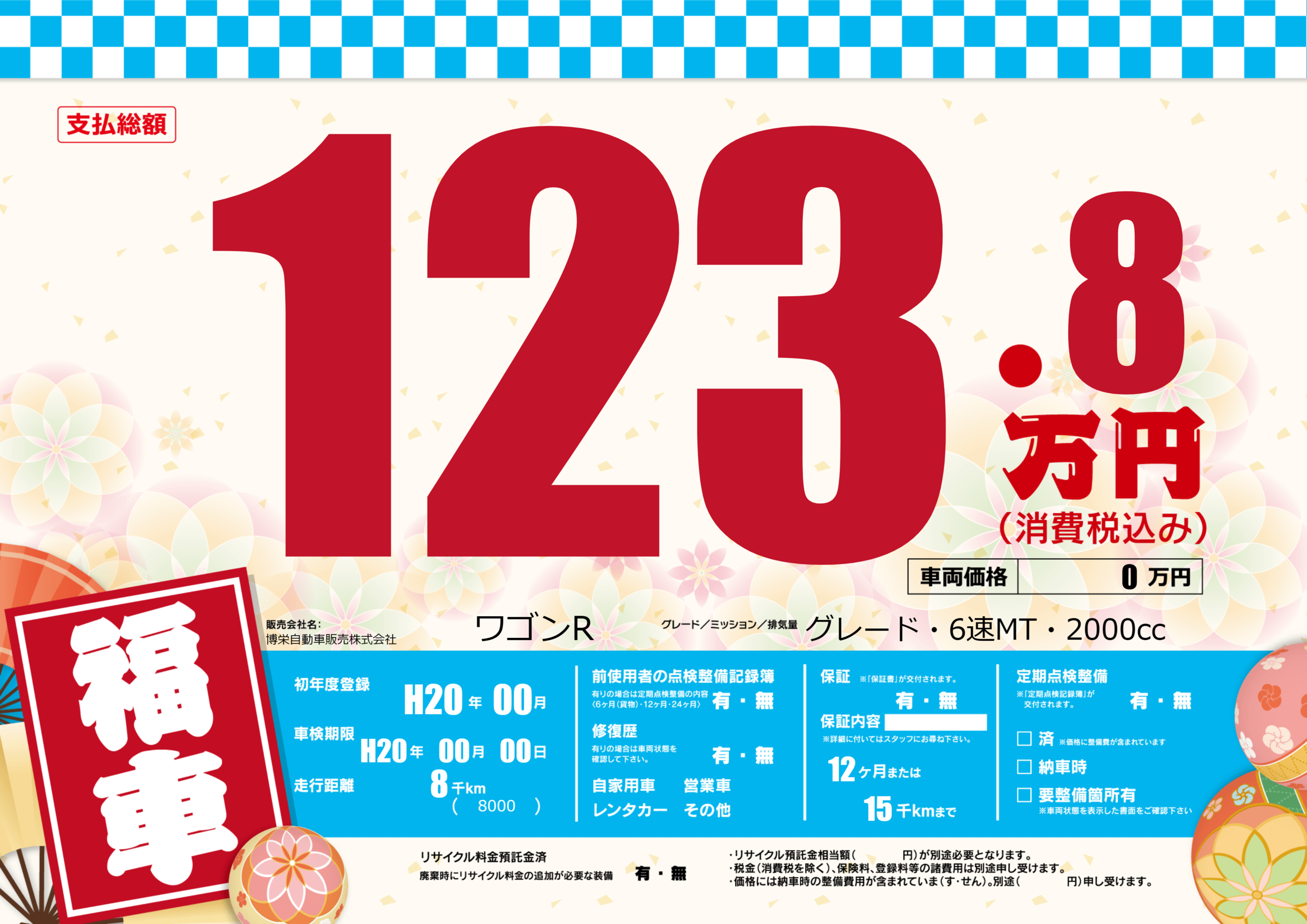 | 走行キロ | 0.8万km | 初年度登録 | H20年00月 |