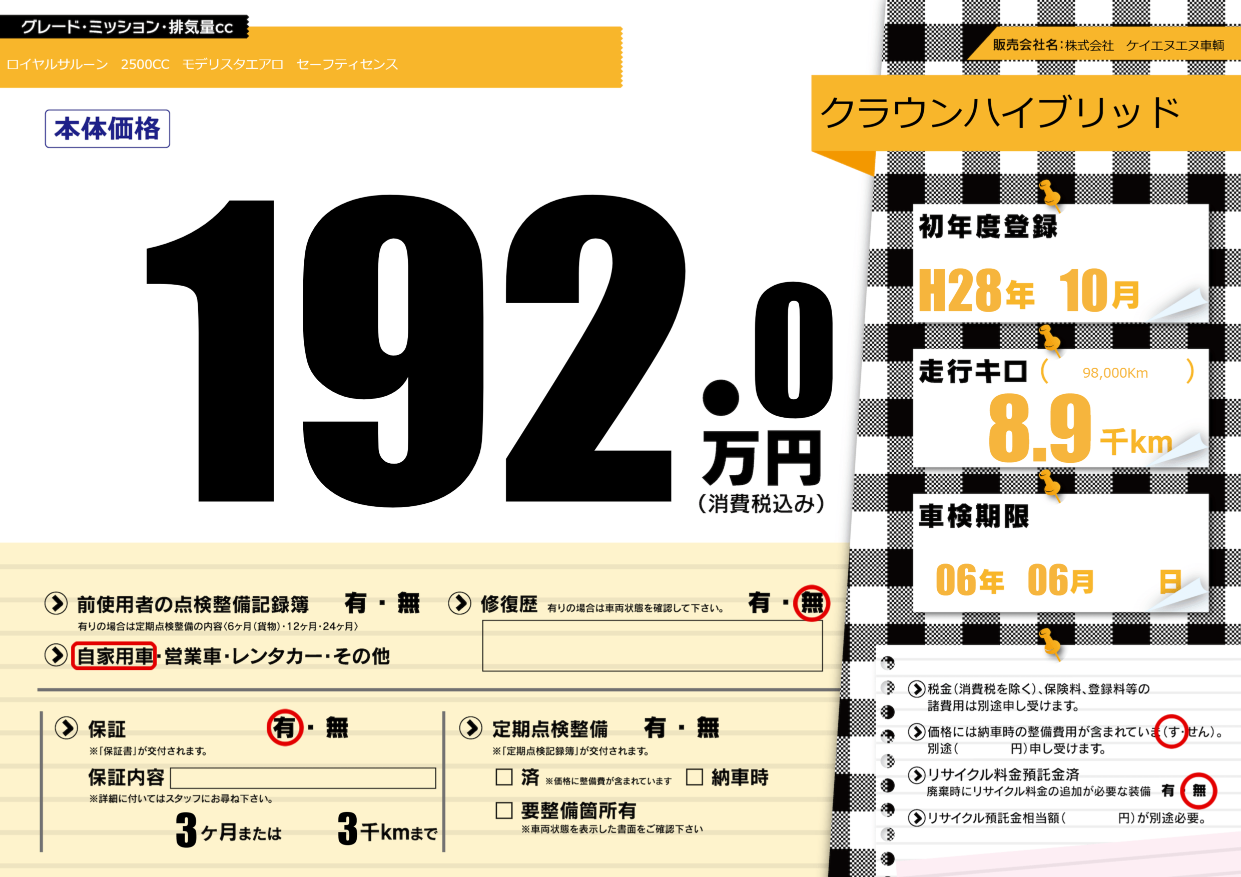 | 車名 | クラウンハイブリッド | グレード ミッション 排気量 |