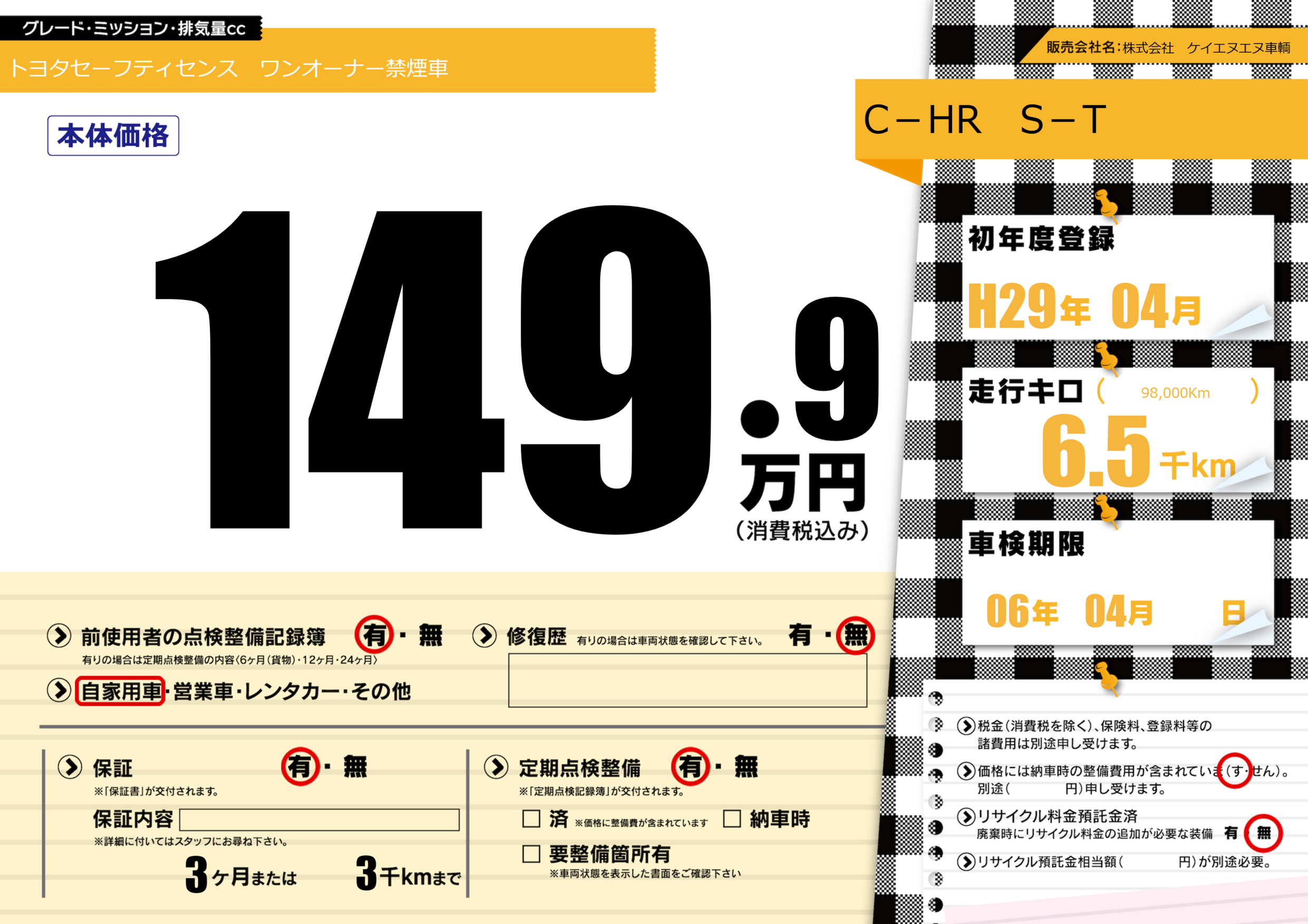 | 車名 | C-HR S-T | グレード ミッション 排気量 |