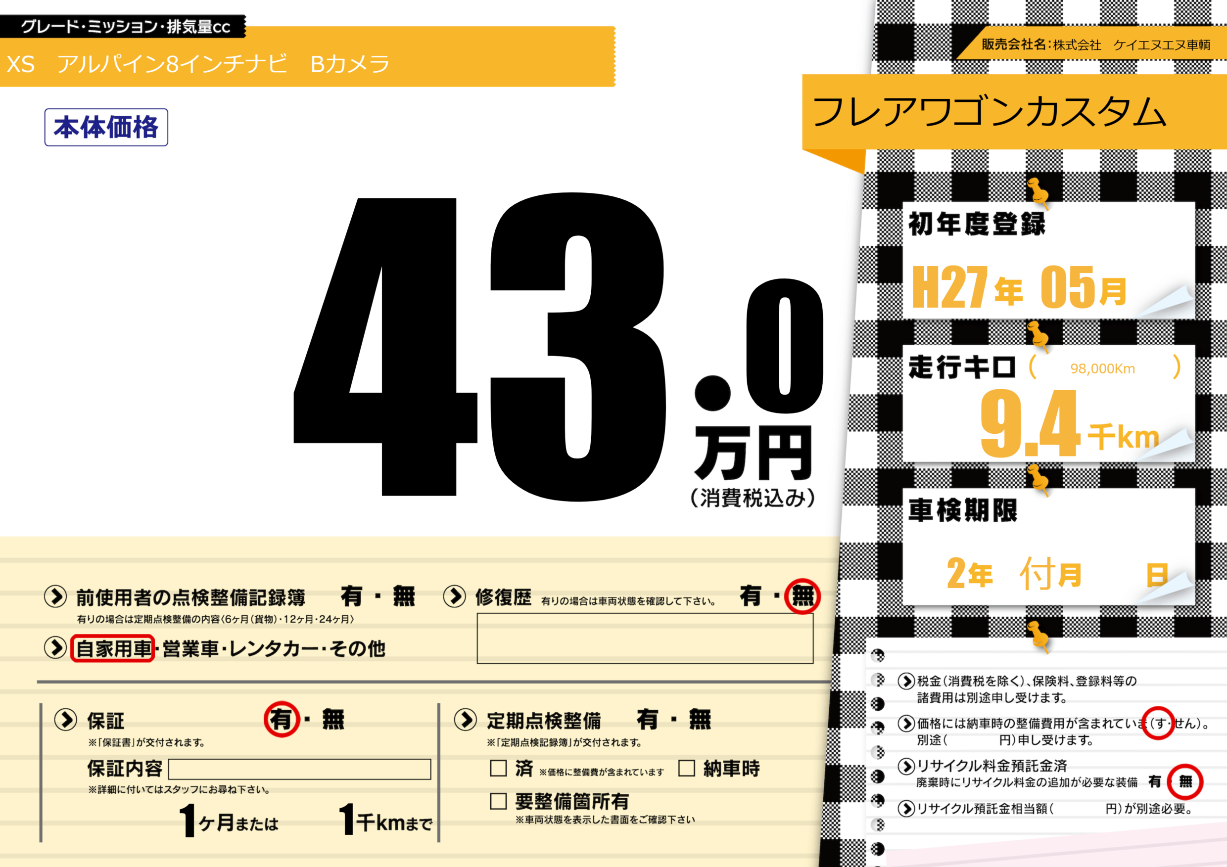 | 車名 | フレアワゴンカスタム | グレード ミッション 排気量 |