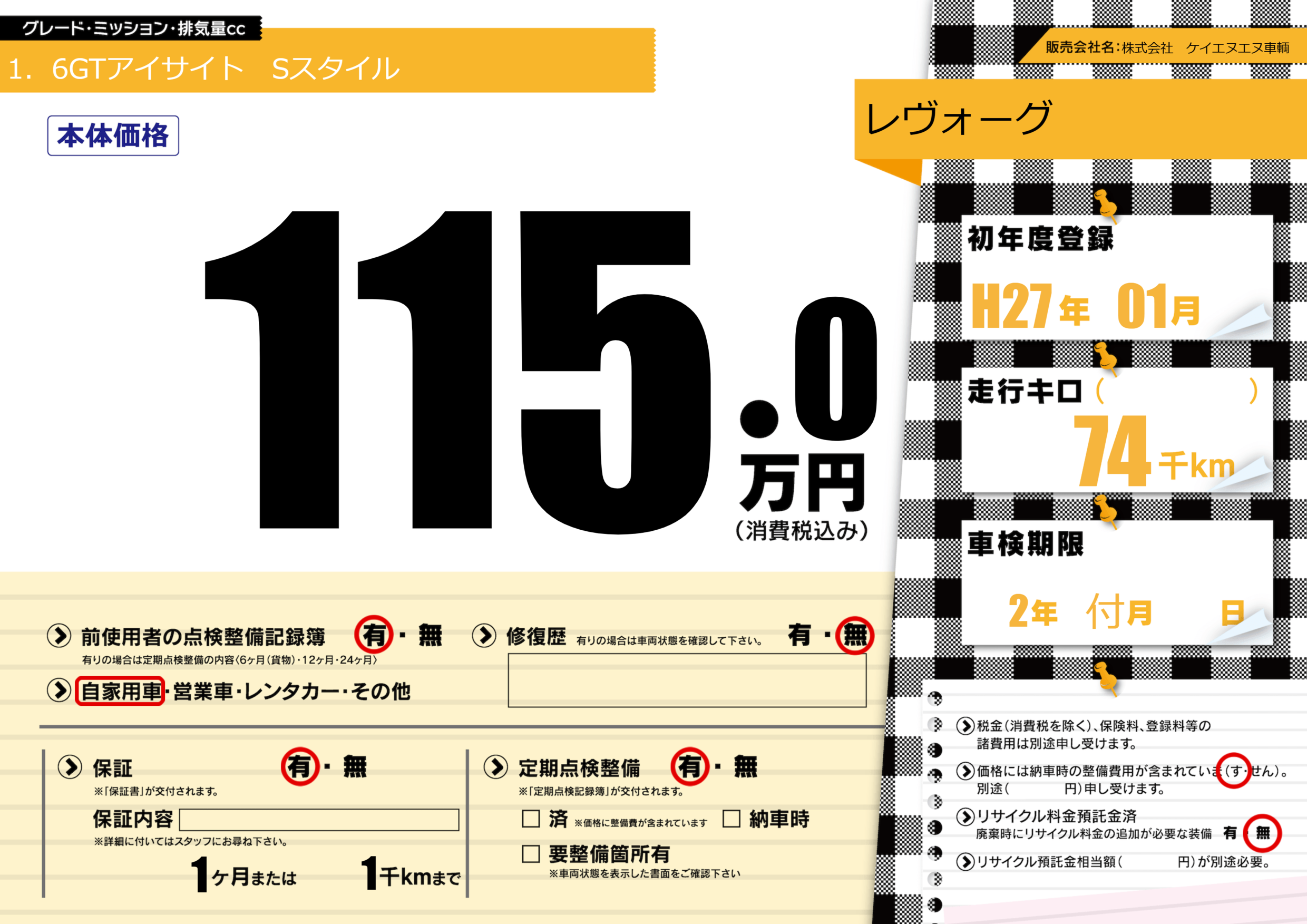なし | 車検制限 | 2年付月---月 |