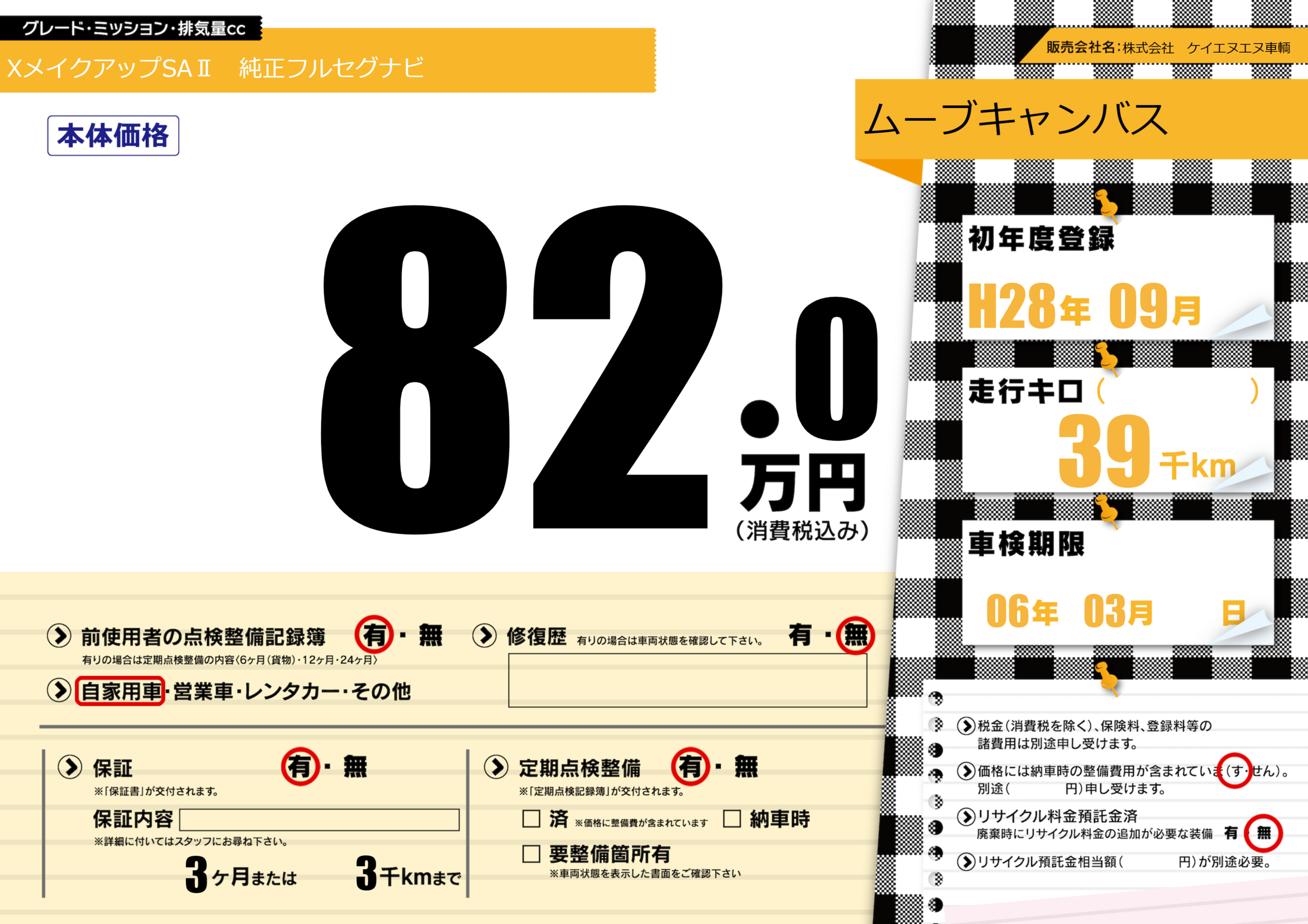 | 車名 | ムーブキャンバス | グレード ミッション 排気量 |