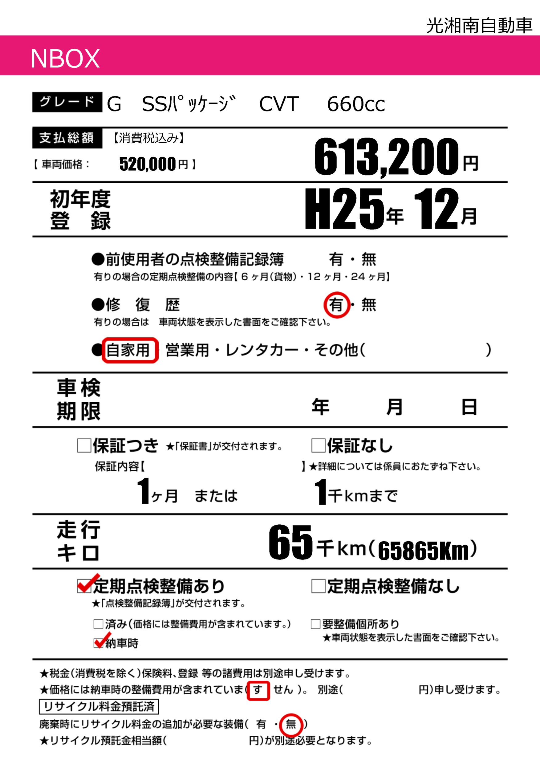 | 車名 | NBOX | グレード ミッション 排気量 |