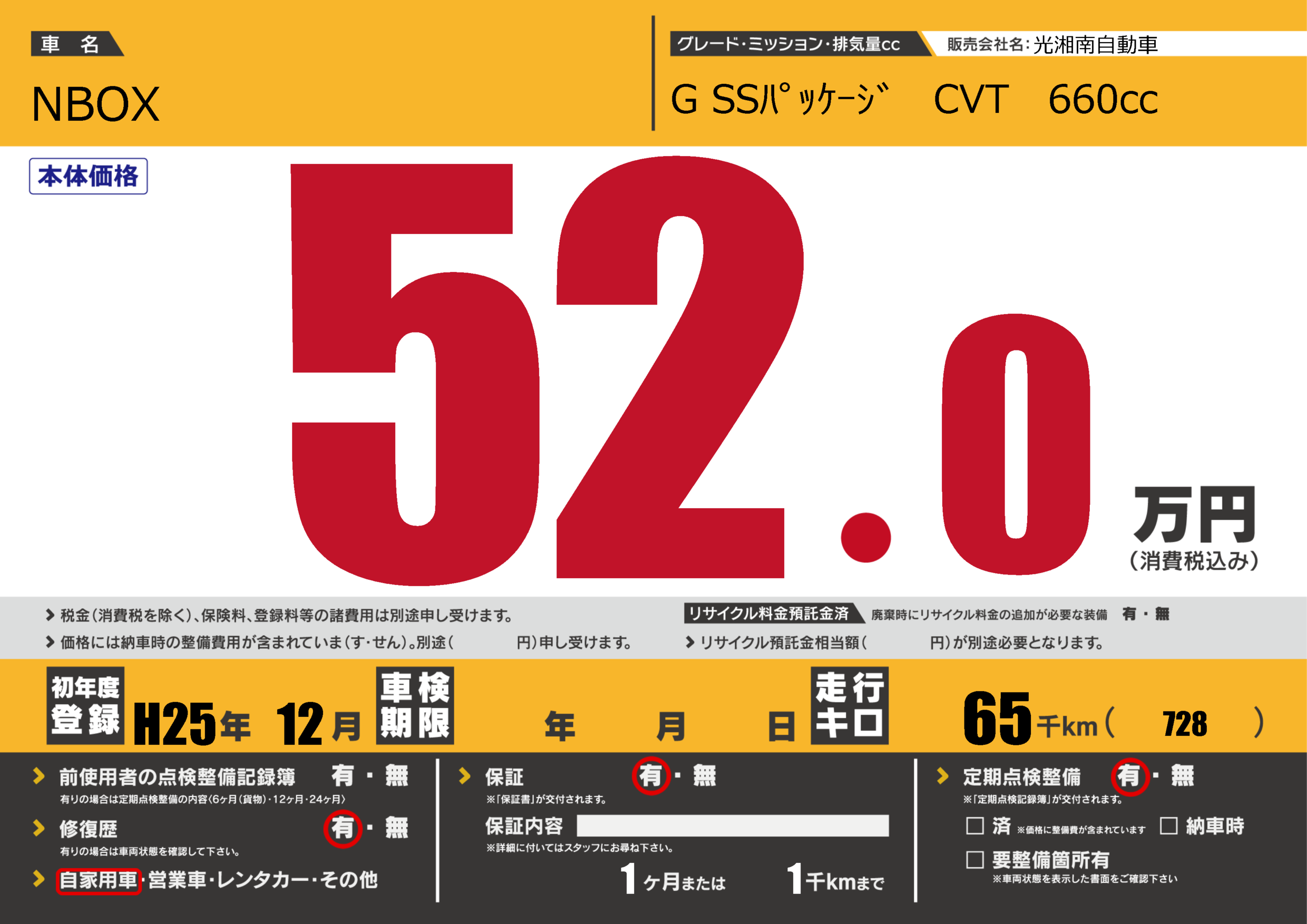 | 車名 | NBOX | グレード ミッション 排気量 |