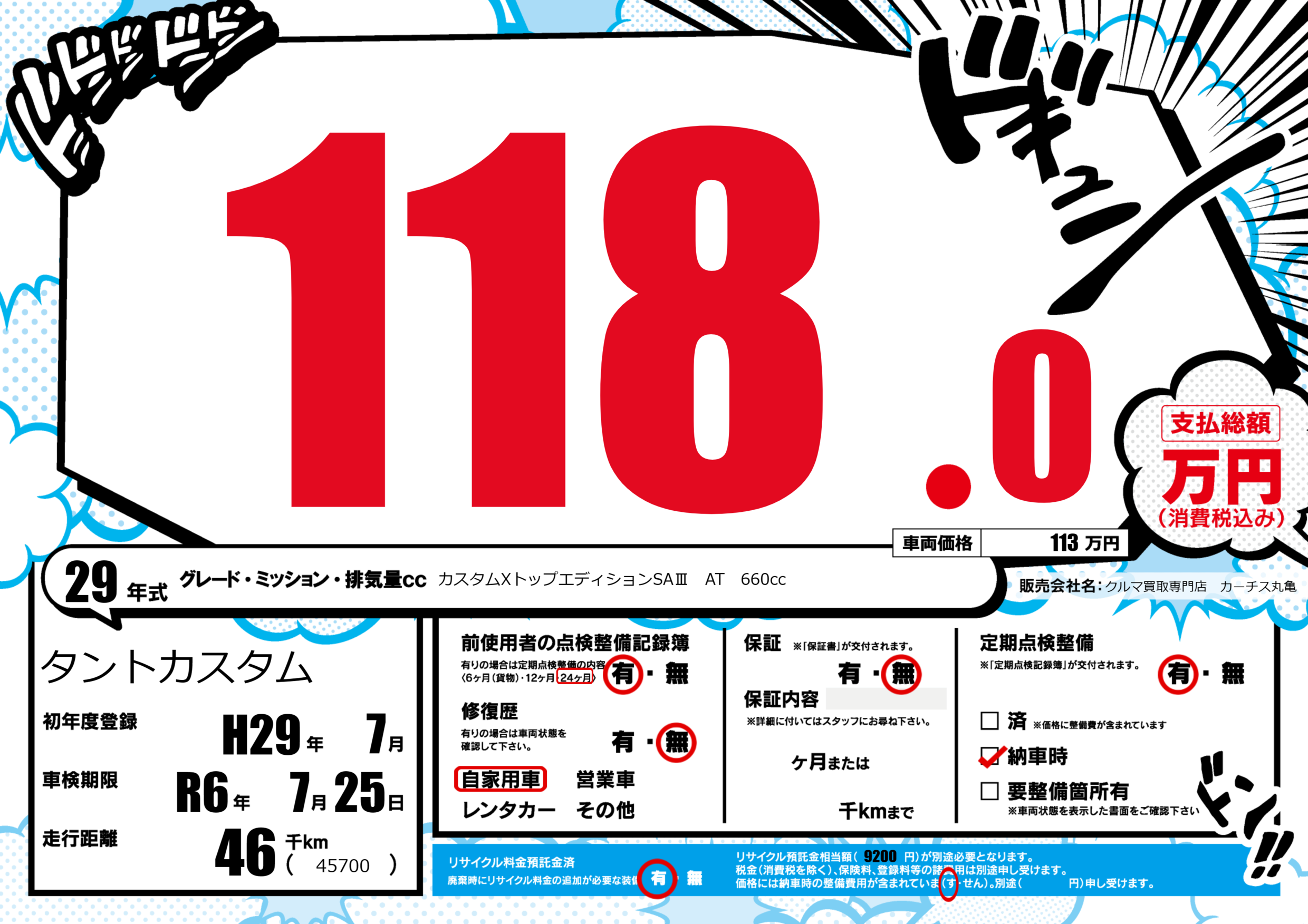 | 走行キロ | 4.6万km | 初年度登録 | H29年7月 |