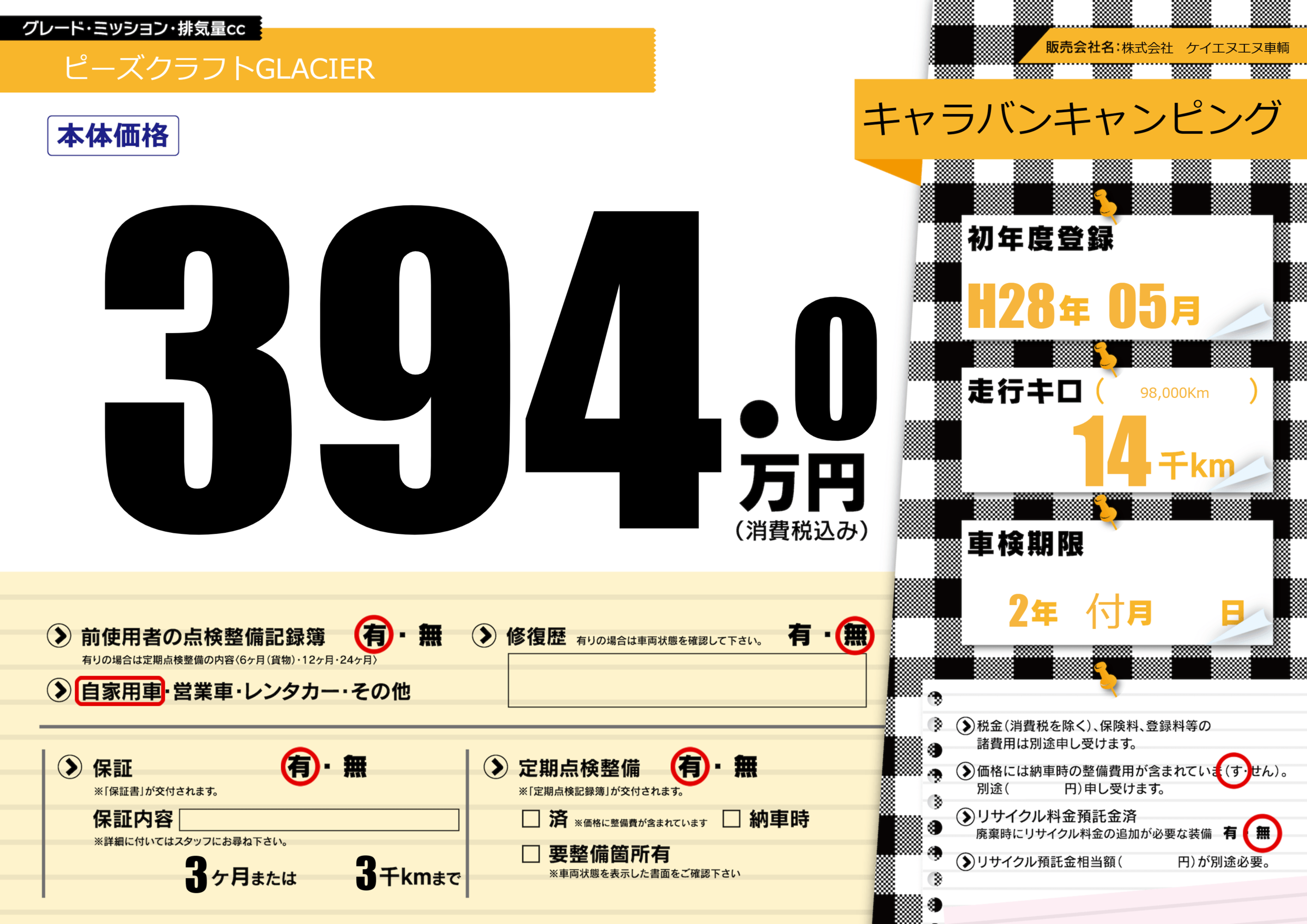 保証付き 保証内容(---) 3ヶ月または(3)千kmまで |