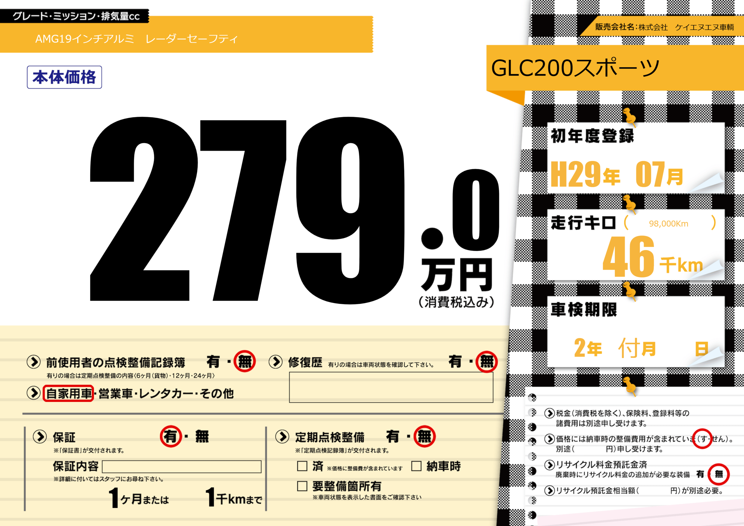 | 車名 | GLC200スポーツ | グレード ミッション 排気量 |