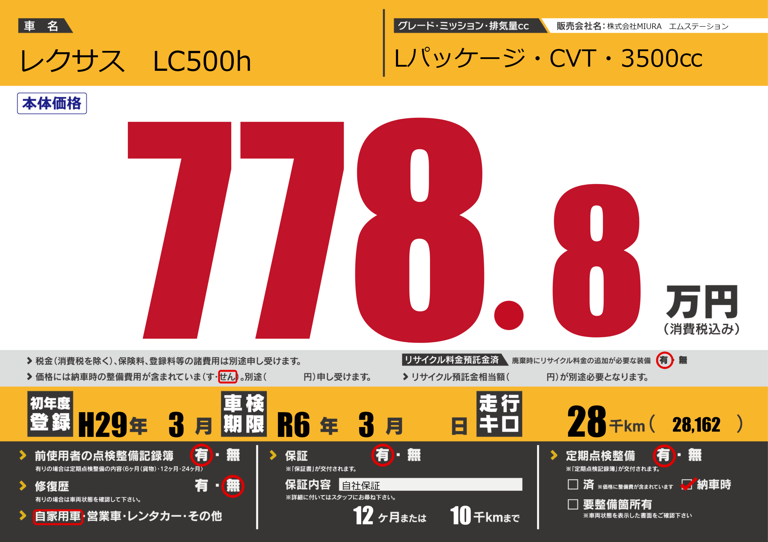 | 車検制限 | R6年 3月 - 日 | ||