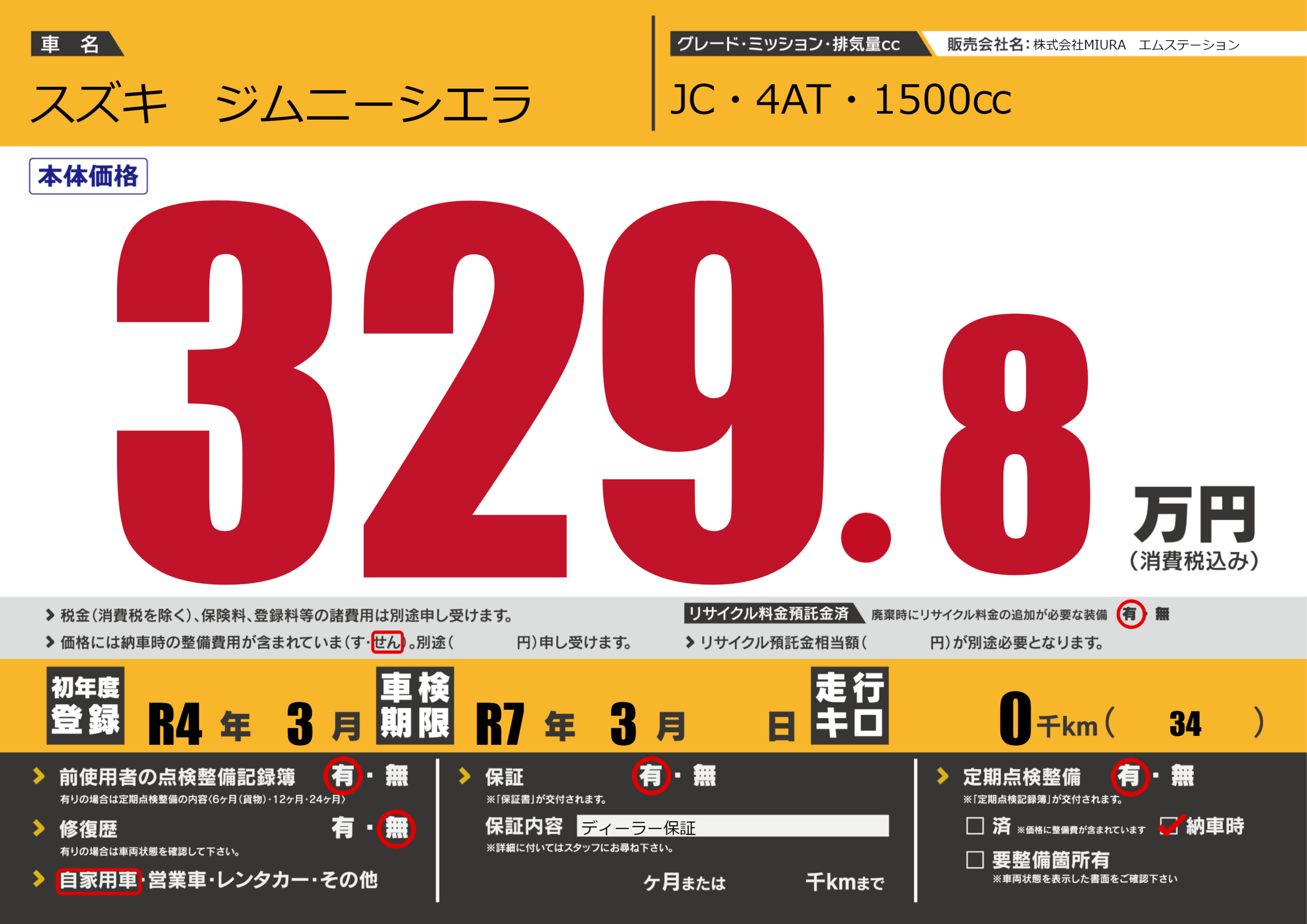 | 車検制限 | R7年 3月 - 日 | ||